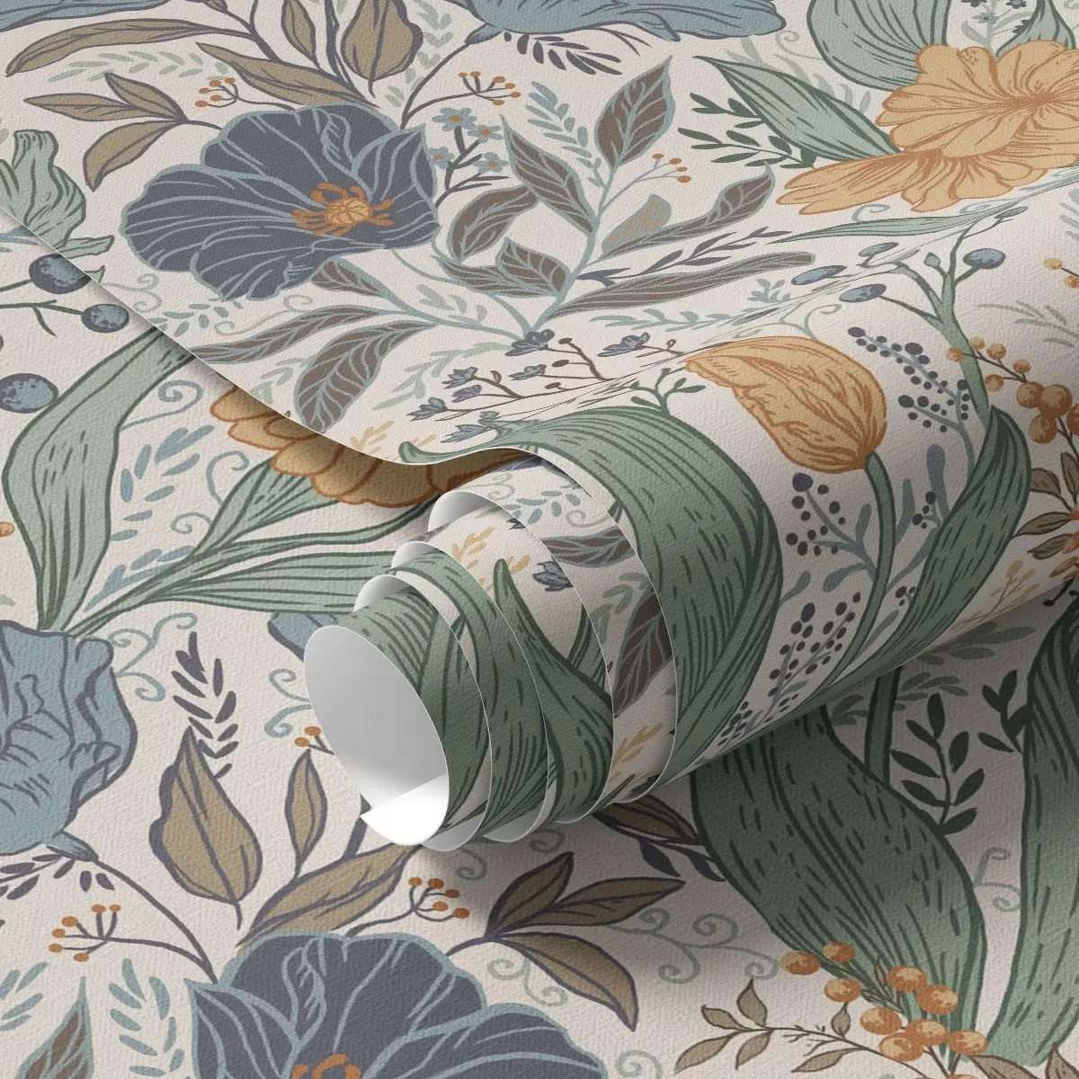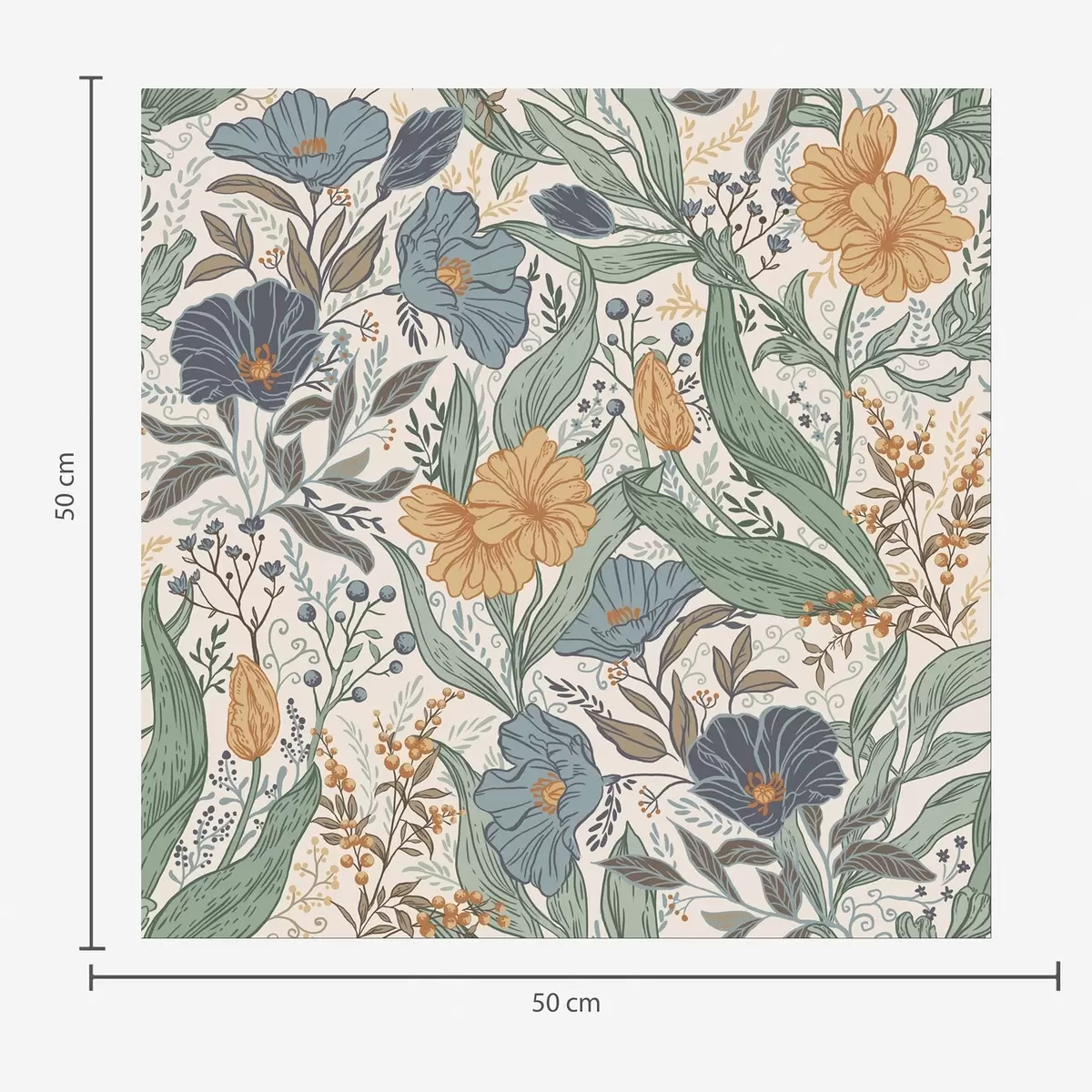 Tapeet Käsitsi joonistatud illustratsioon heinamaa lilledest soojades värvides Nr. a00180