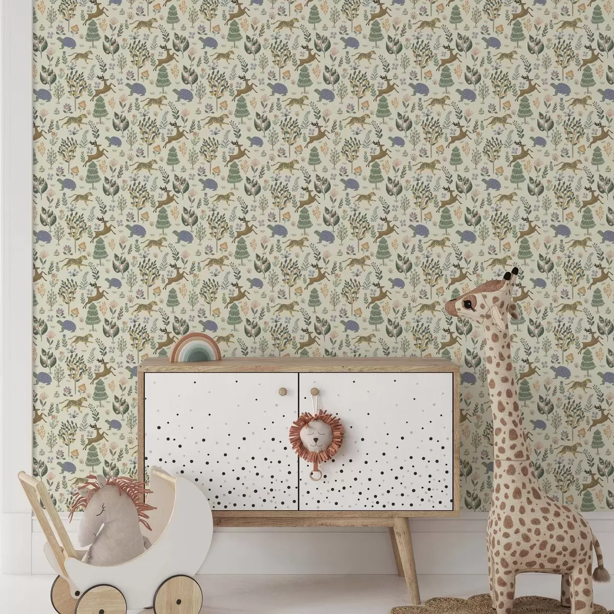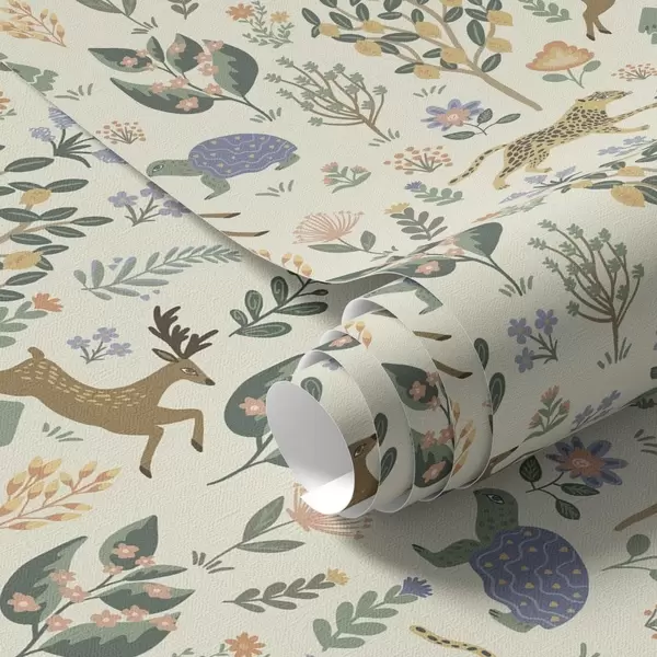 Tapeet Retro illustratsioon leopardide, puude ja hirvedega Nr. a00184