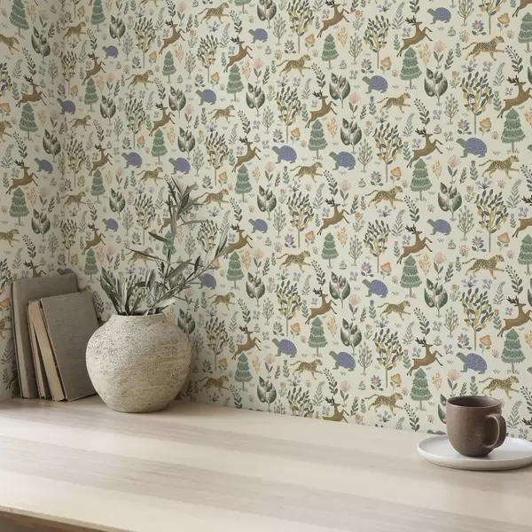Tapeet Retro illustratsioon leopardide, puude ja hirvedega Nr. a00184