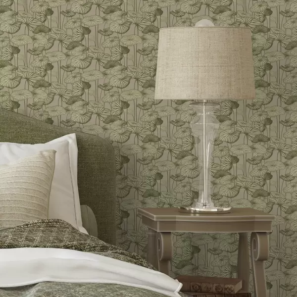 Tapeet Graafilised lootoslehed retro stiilis beežil taustal Nr. a00188
