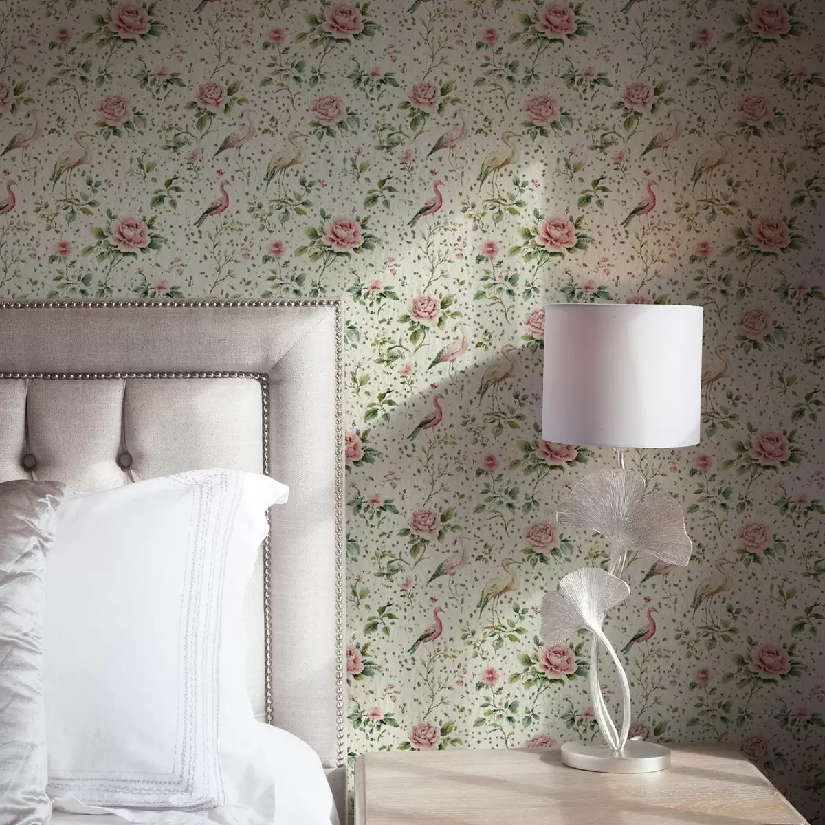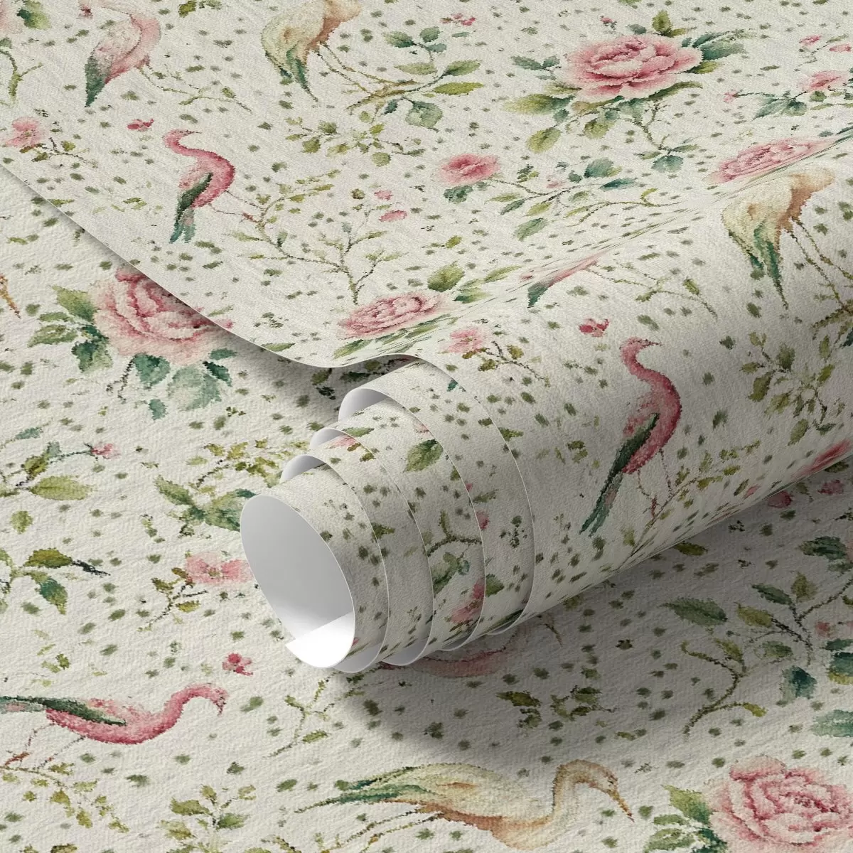 Tapeet Pastellroosad roosad ja linnud shabby chic stiilis Nr. a00201