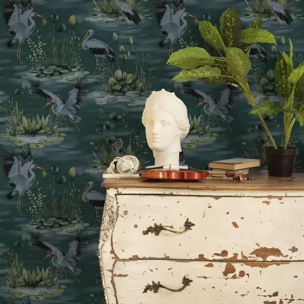 Tapeet Stseenid koos haigrutega tiikide ja vesirooside taustal Nr. a00202