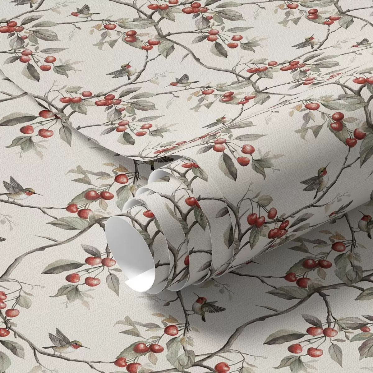 Tapeet Linnud punaste marjadega kirsiokste vahel Nr. a00206