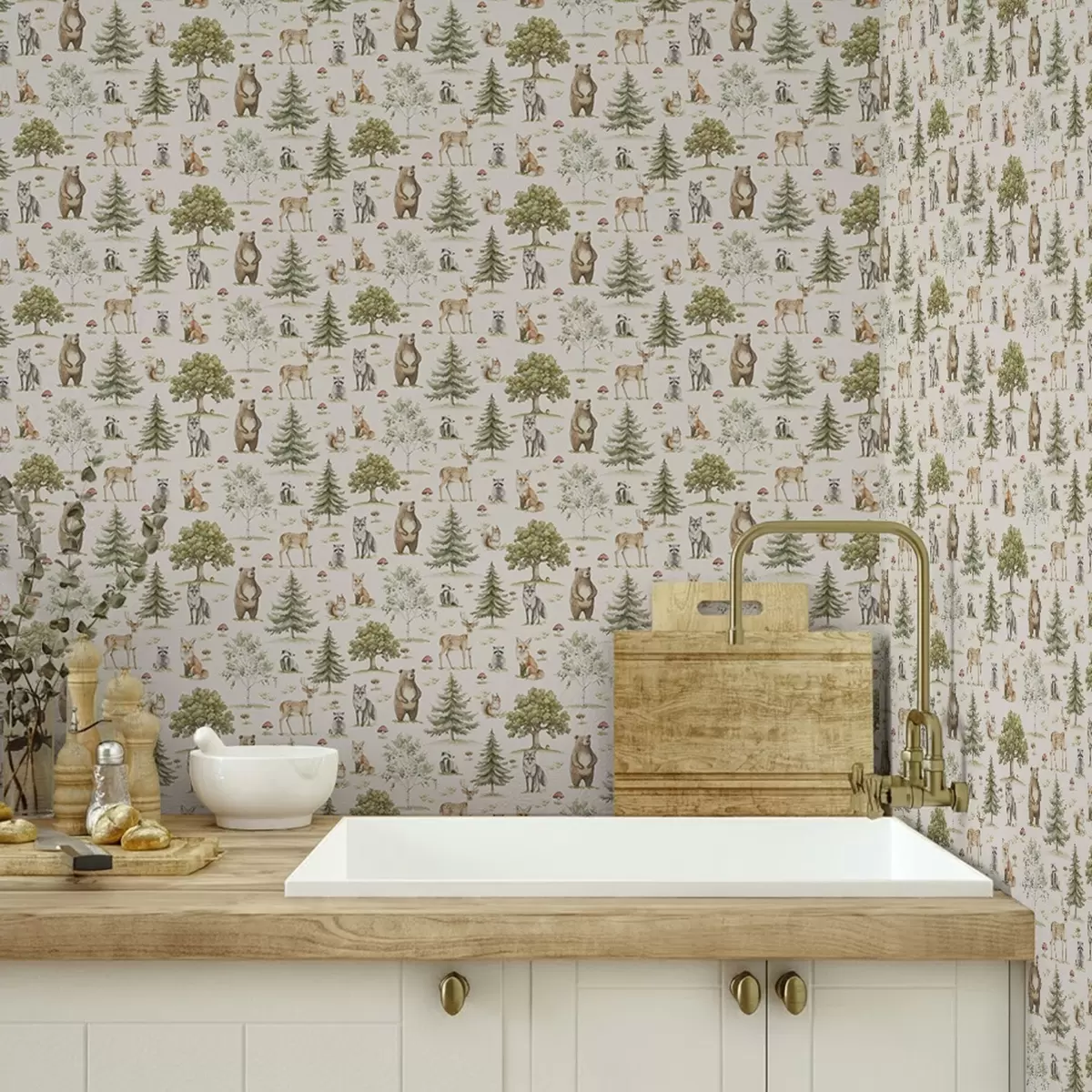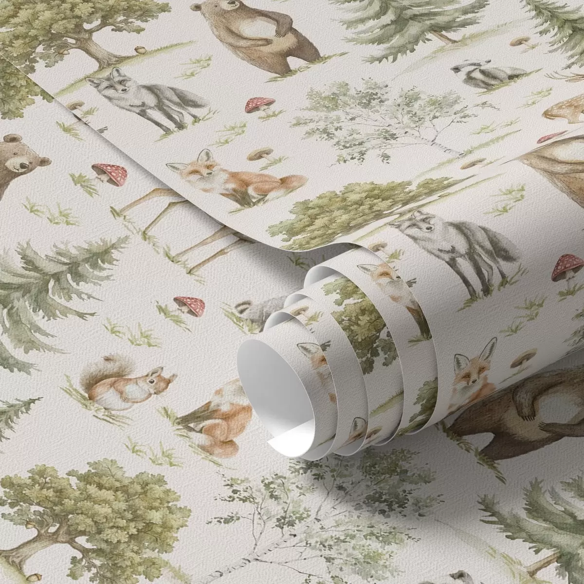 Tapeet Pehme akvarellstiilis metsloomad, puud ja seened Nr. a00212