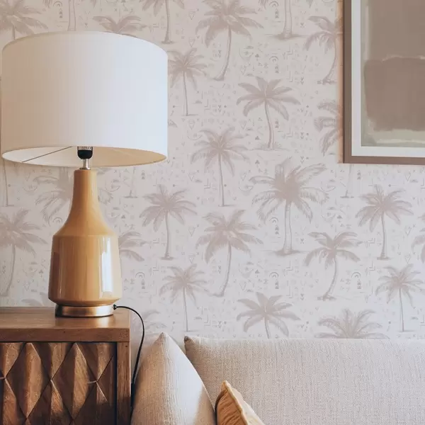 Tapeet Etniliste sümbolitega palmipuud, pastelroosa tooniga Nr. a00213