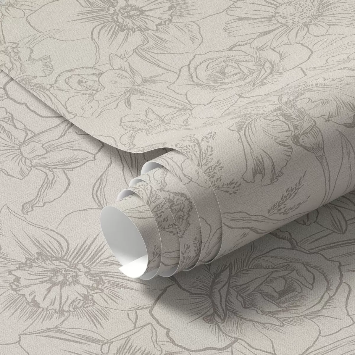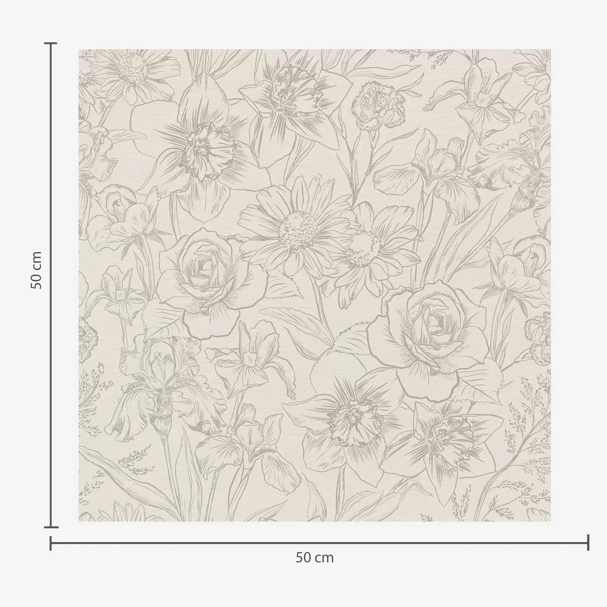 Tapeet Kontuurlilled kreemval taustal, õrn lillemustriga Nr. a00218