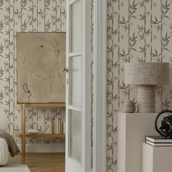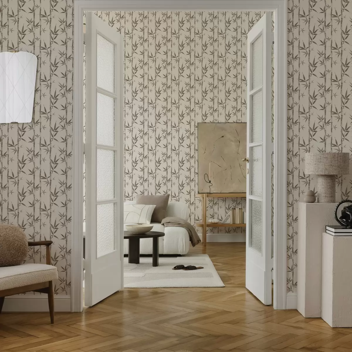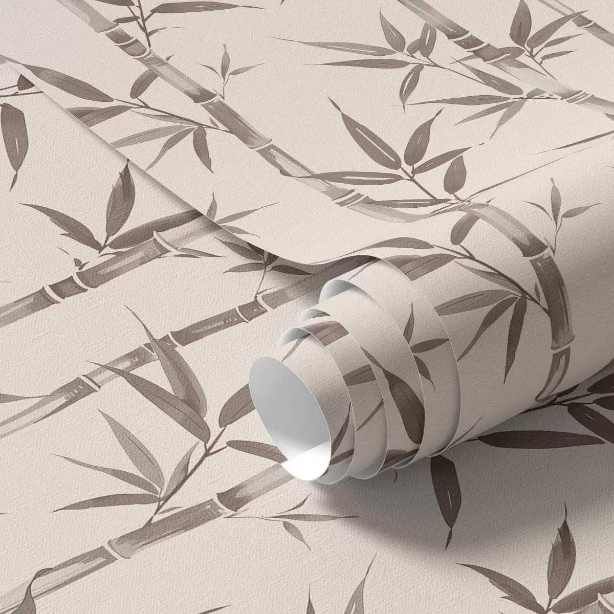 Tapeet Jaapani stiilis lehtedega beež bambusemuster Nr. a00236