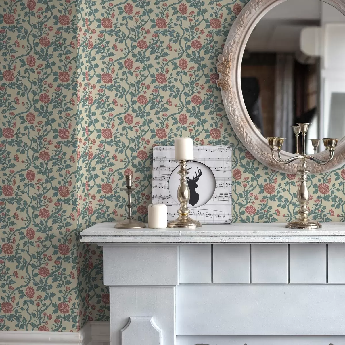 Tapeet Retro muster punaste ja roheliste lilledega a00250