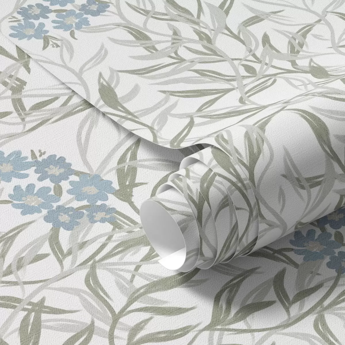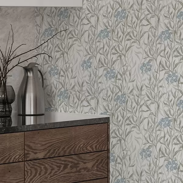 Tapeet Kerge botaaniline trükis siniste lilledega Nr. a00268