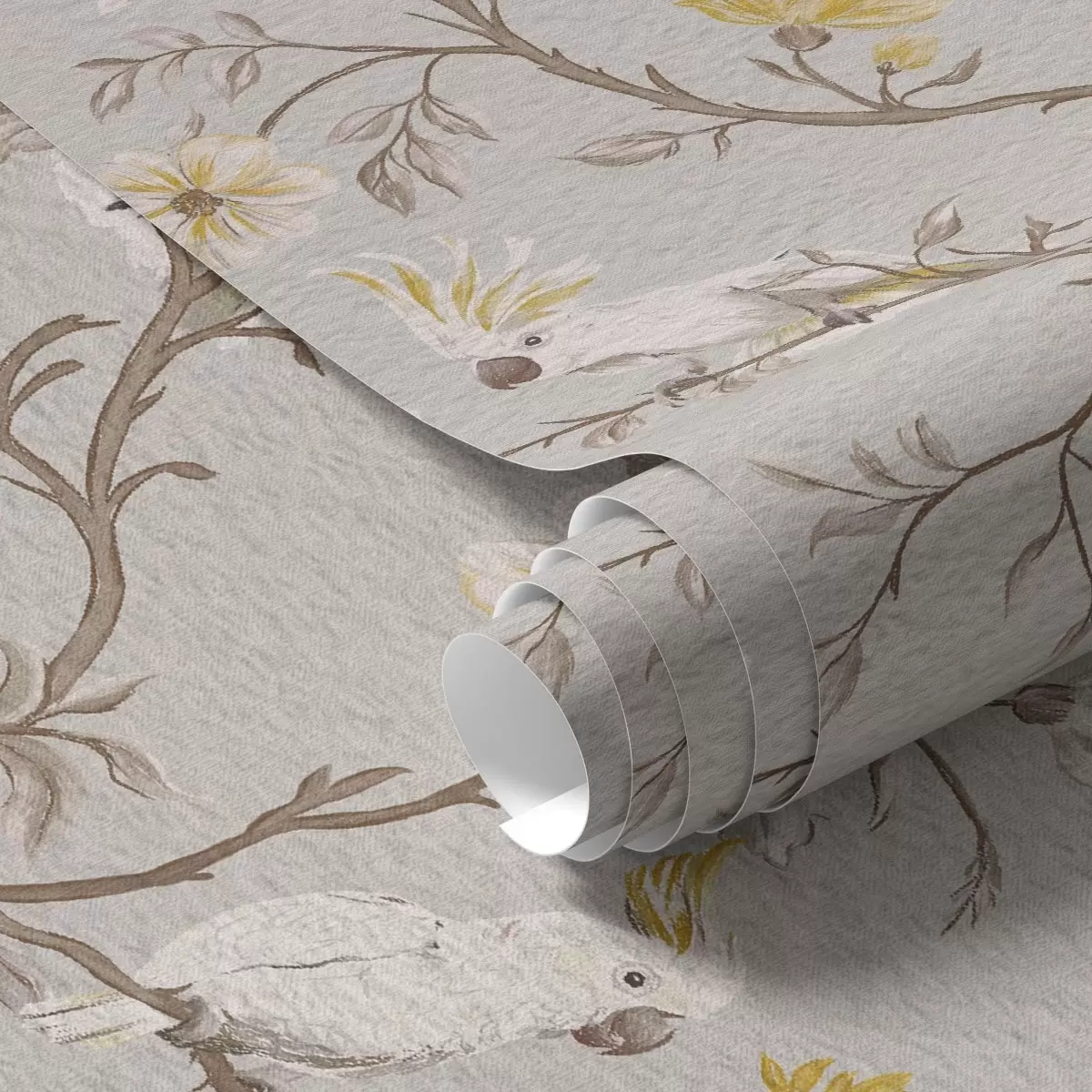 Tapeet Papagoid ja kollased lilled heledal taustal Nr. a00270