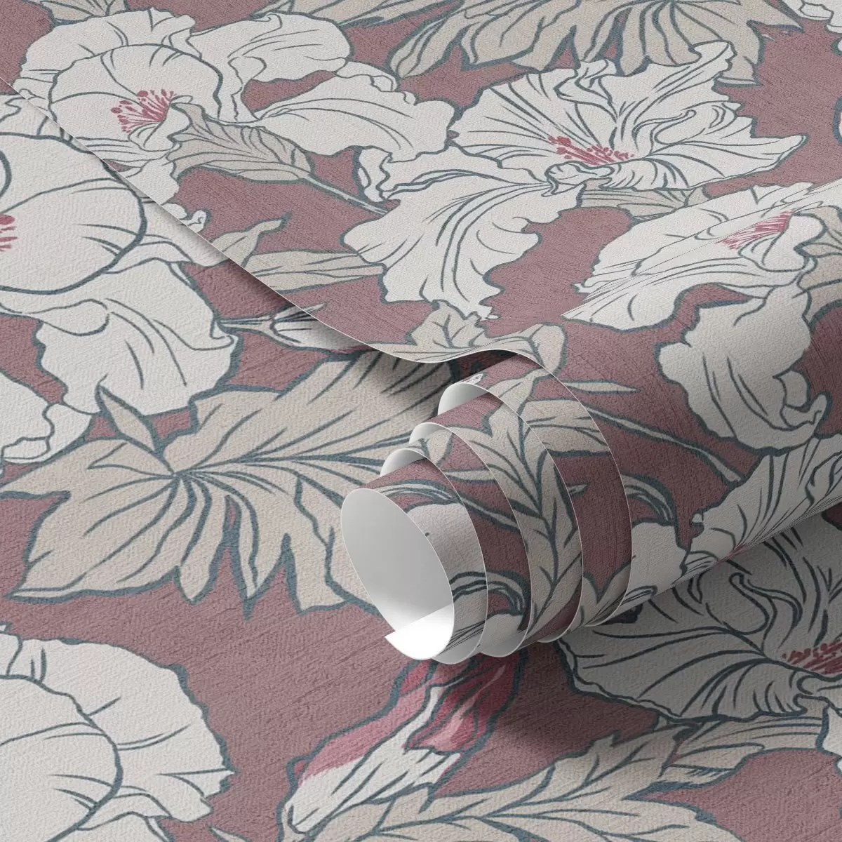 Tapeet Valge hibiskus roosa taustal koos punaste pungadega Nr. a00272