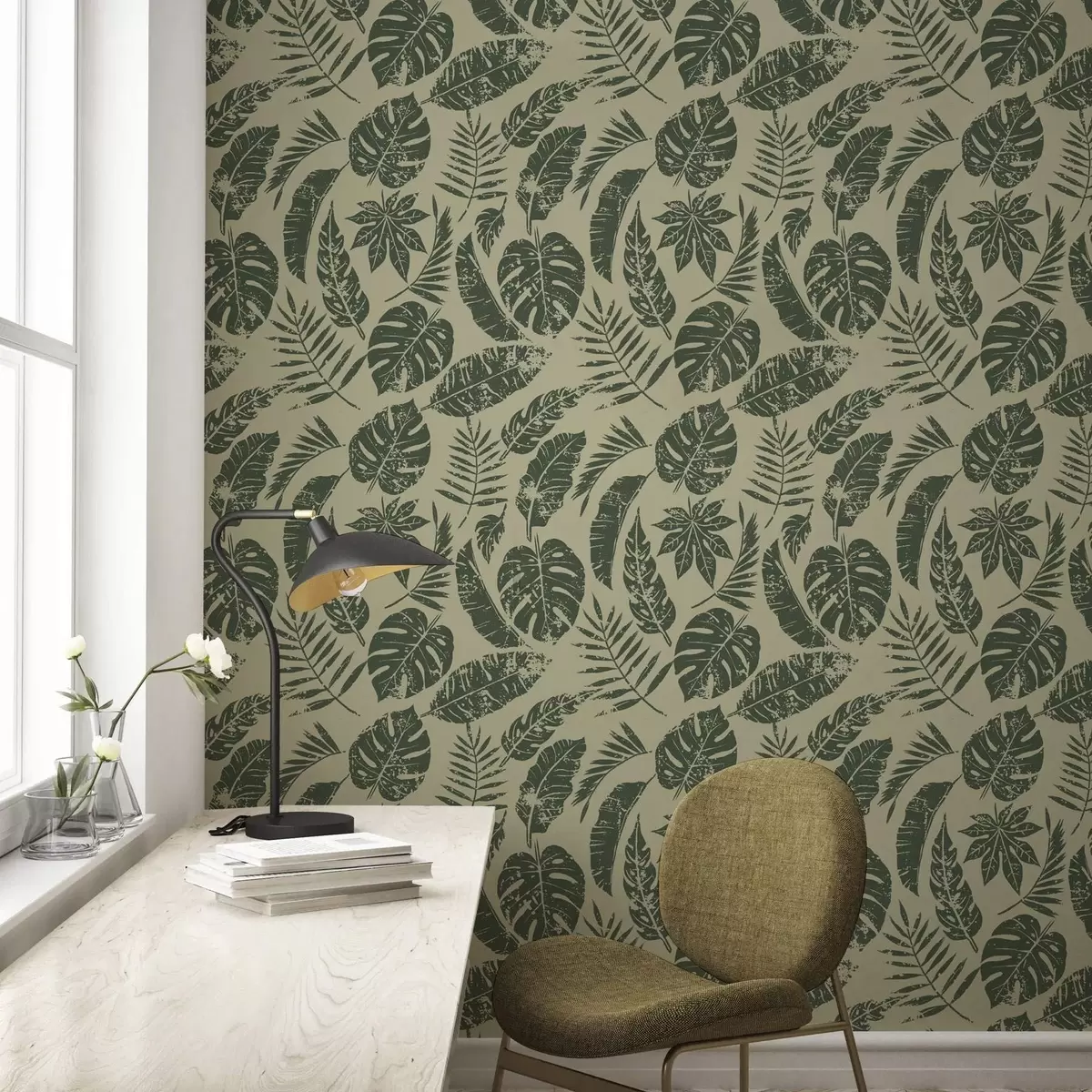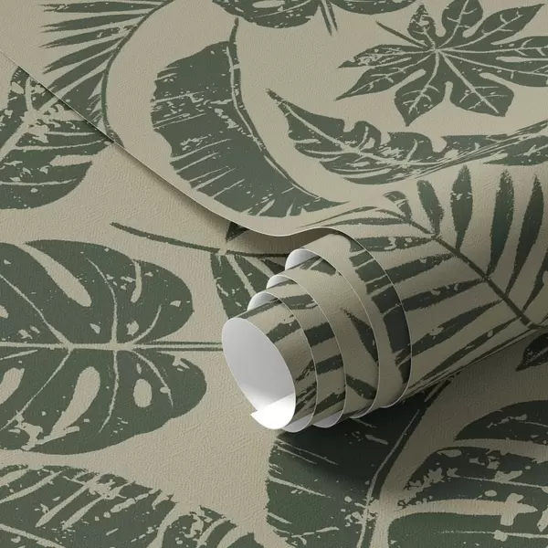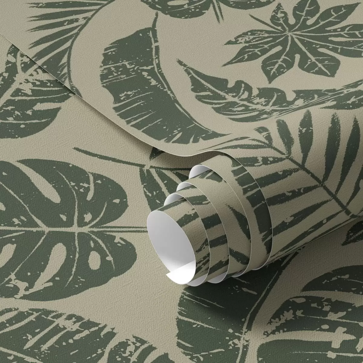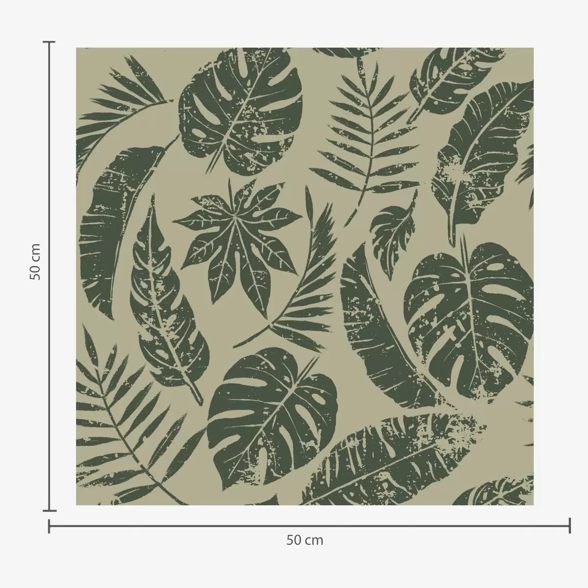 Tapeet Troopilised lehed linokoopia stiilis, rohelised kollasel taustal Nr. a00274