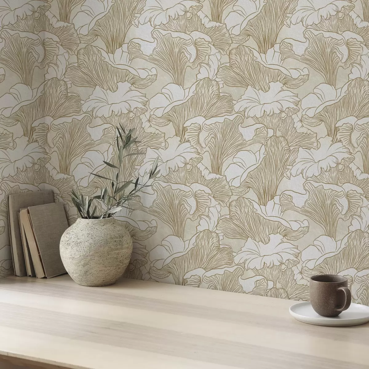 Tapeet Kanterelli seened, jooneline joonistus kreemvalgel taustal Nr. a00275