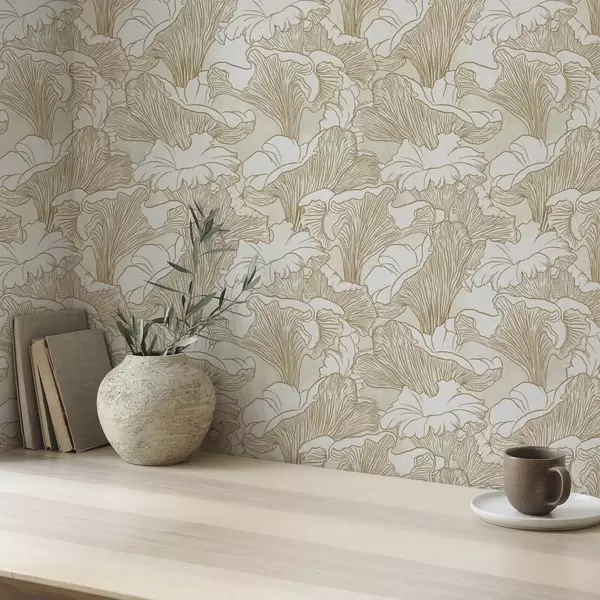 Tapeet Kanterelli seened, jooneline joonistus kreemvalgel taustal Nr. a00275