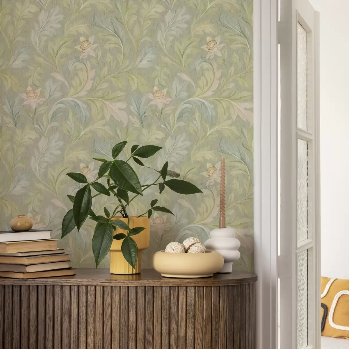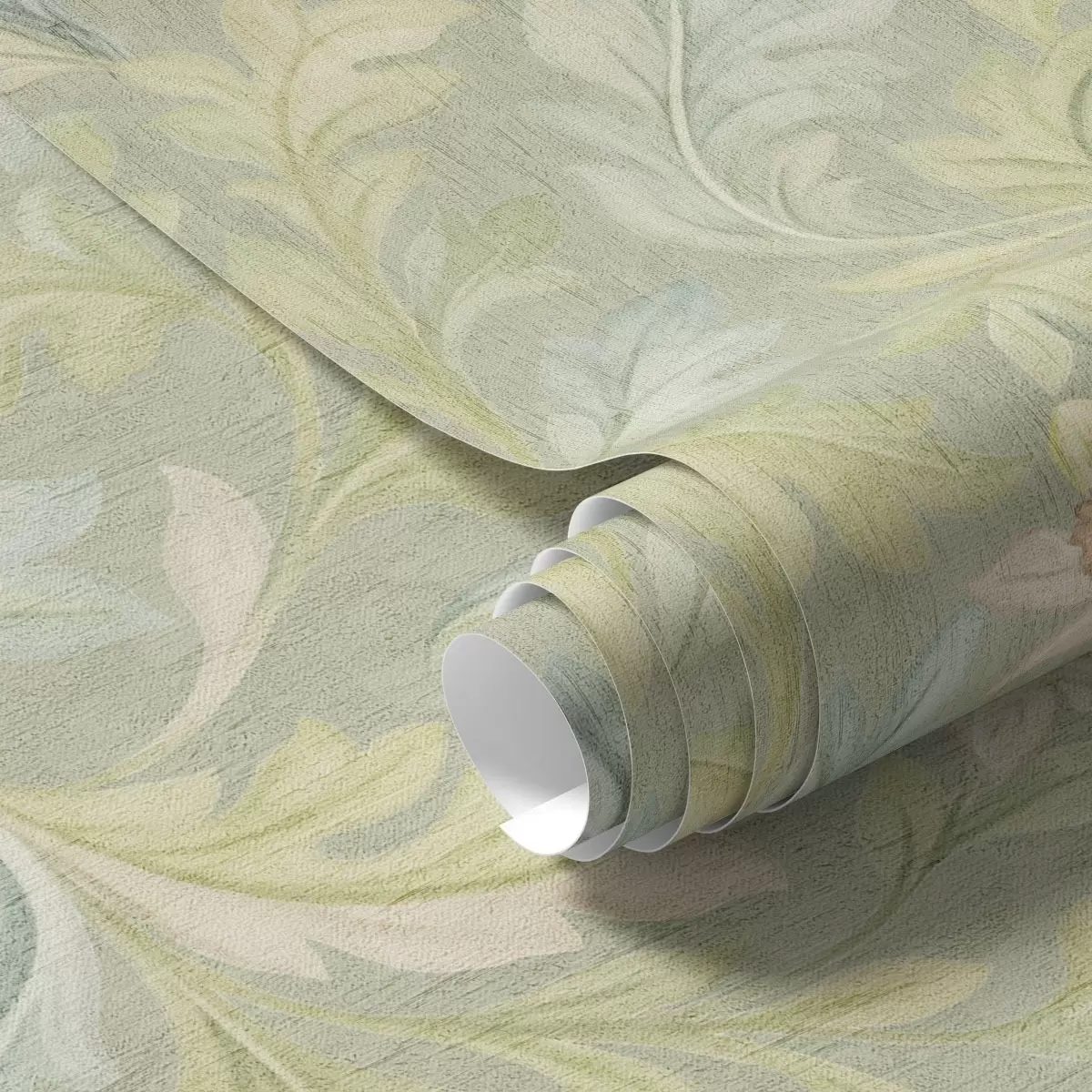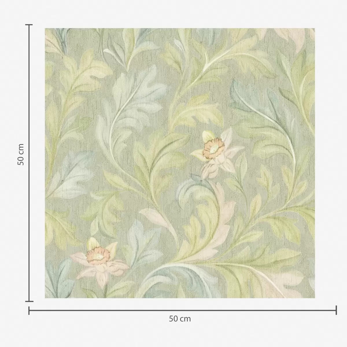 Tapeet Vintage lehed rohelisel taustal, pastelsed värvid Nr. a00277