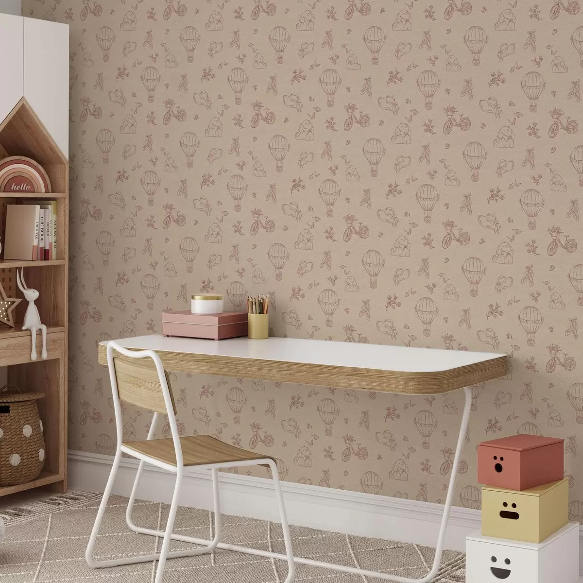 Tapeet Beebi roosa muster koera, lillede ja õhuga Nr. a00279