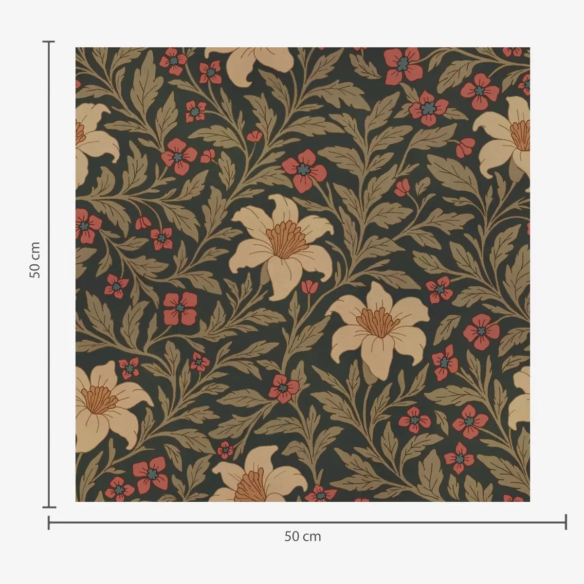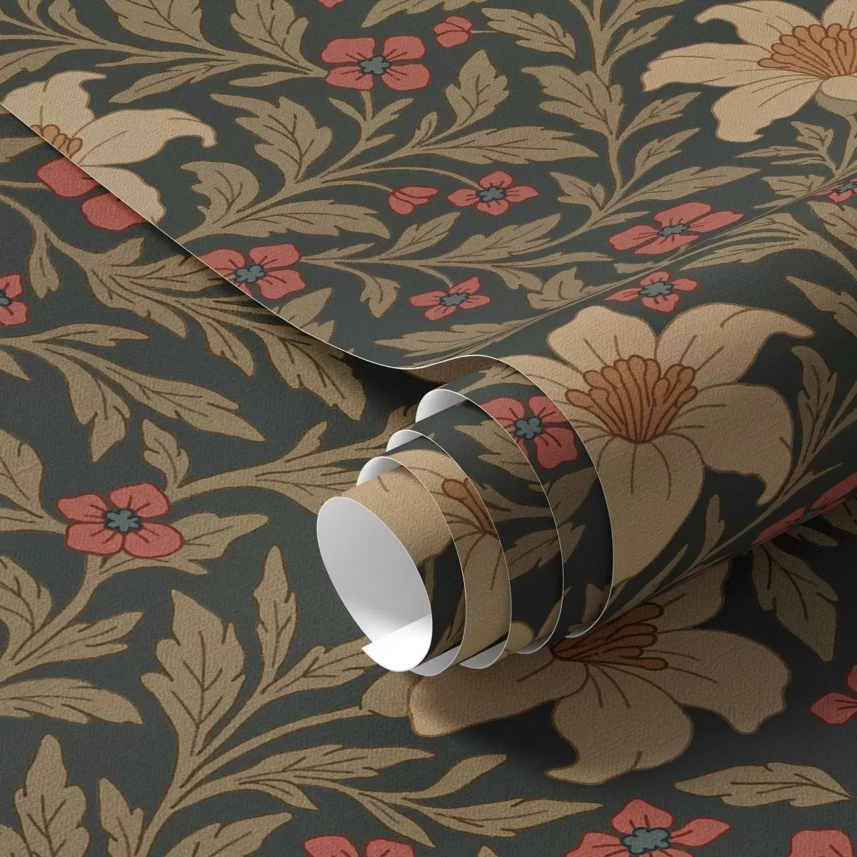 Tapeet Tume taust kollaste ja punaste lilledega juugendstiilis a00293