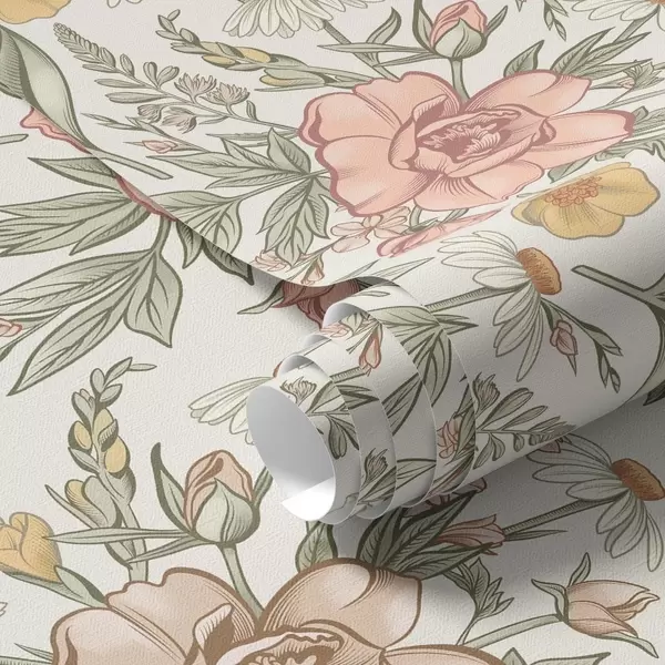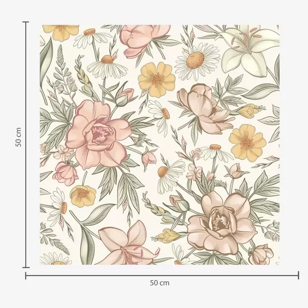 Tapeet Õrnades värvides martsiblikad, pioonid, liiliad ja lehed Nr. a00299
