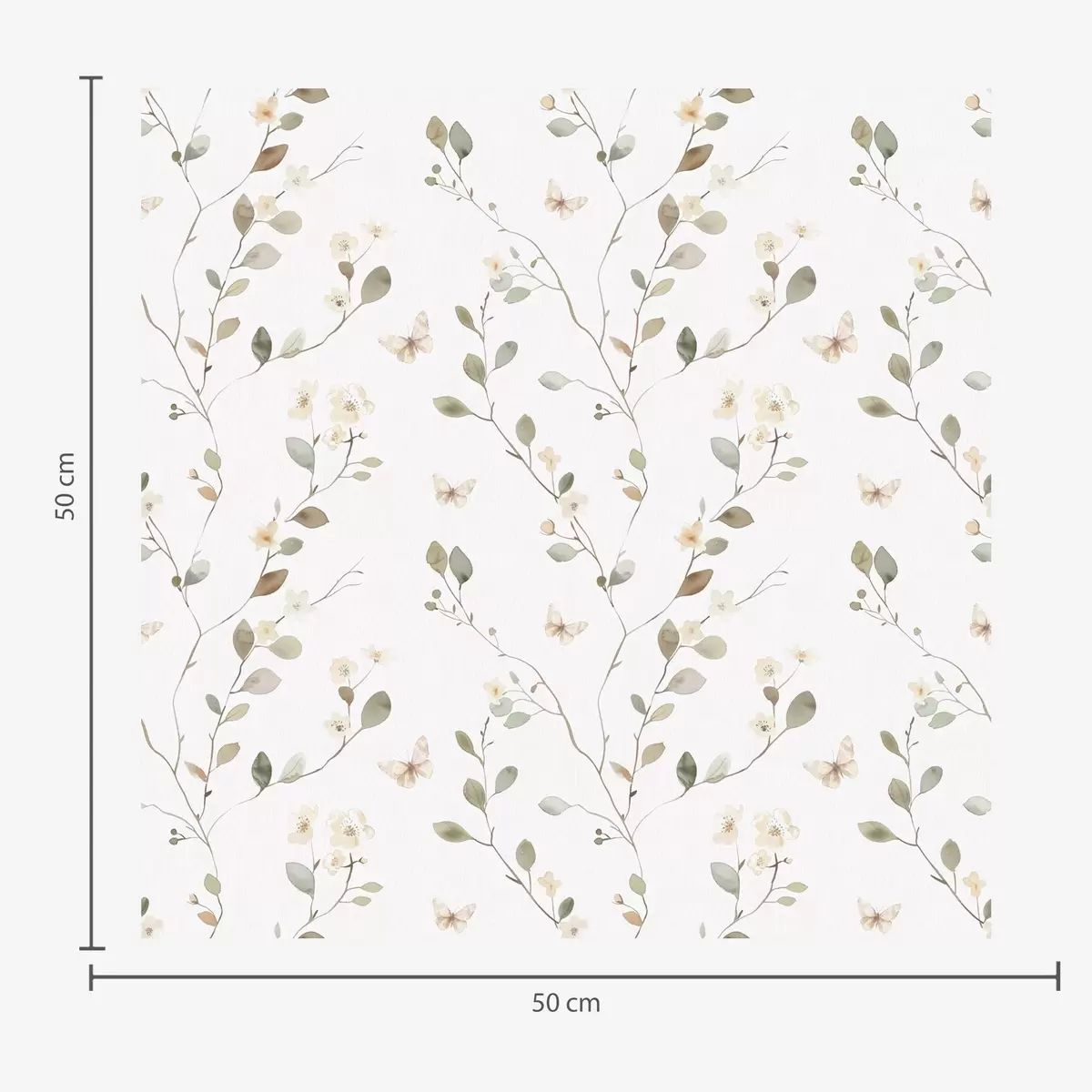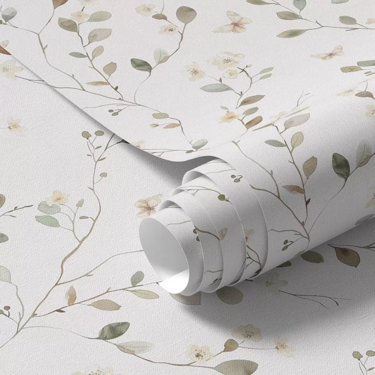 Tapeet Õhukesed oksad koos lillede ja liblikatega valgel taustal Nr. a00342