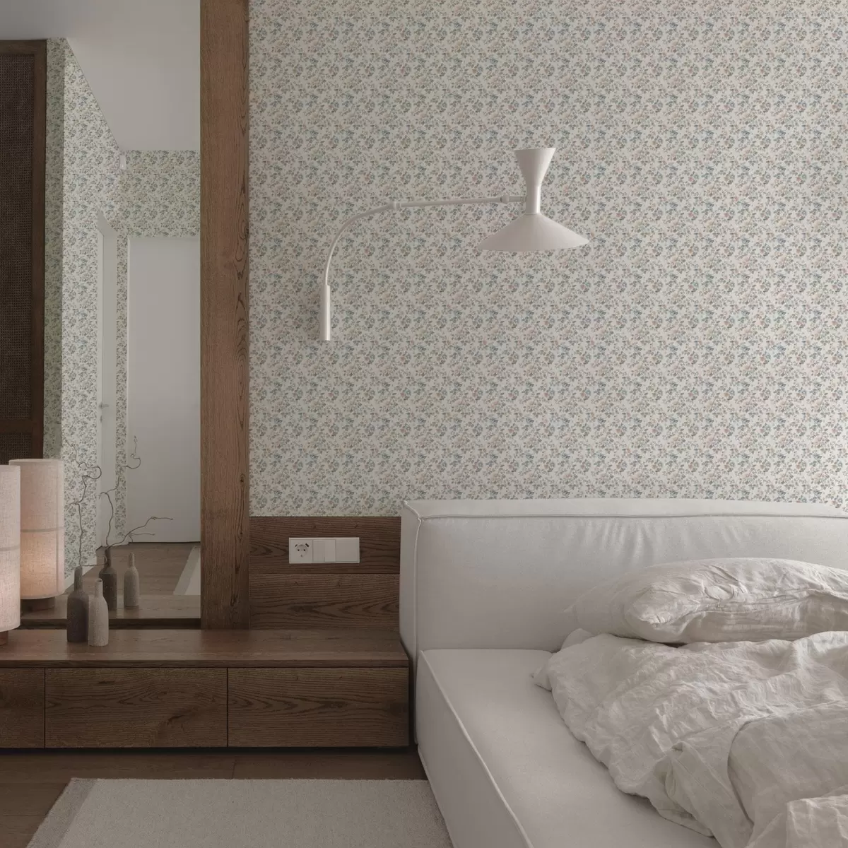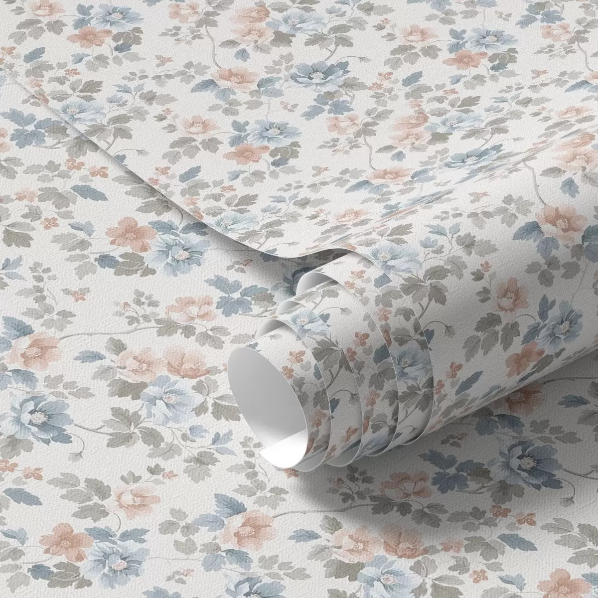 Tapeet Väike lilleornament sinistes ja korallitoonides Nr. a00347