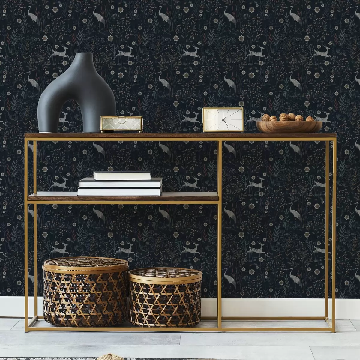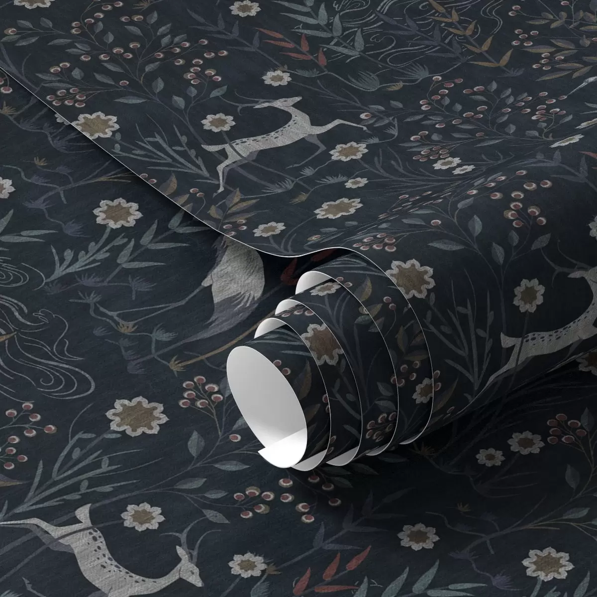 Tapeet Tume taust valge lindude ja hirvedega Nr. a00363