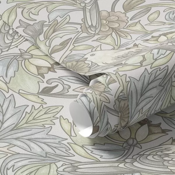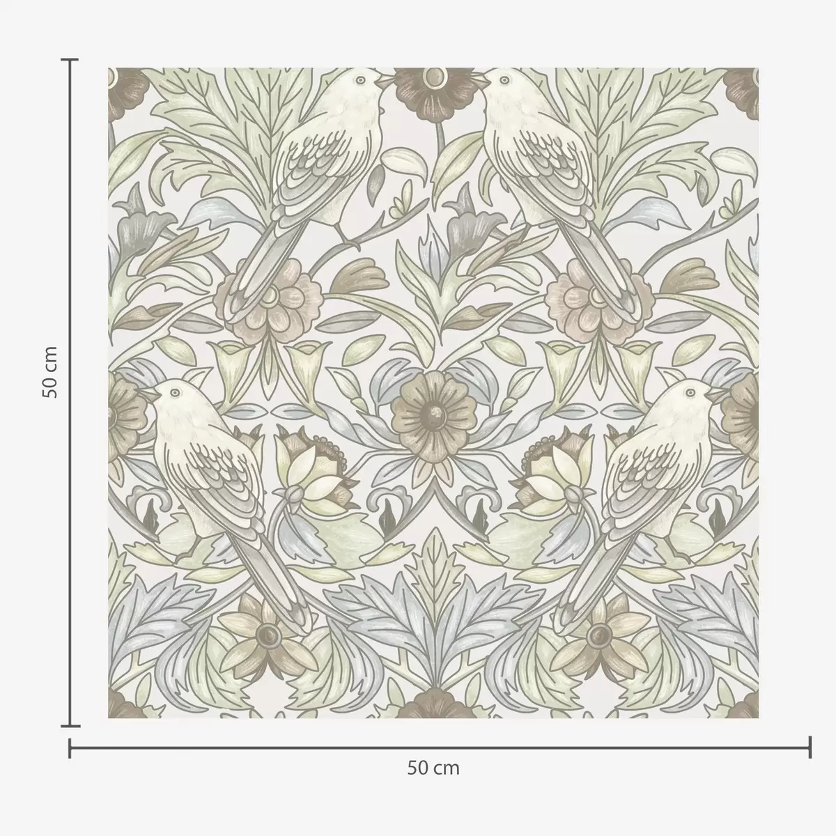 Tapeet Juugendstiilis linnud ja pastelsed stiliseeritud lilled Nr. a00385
