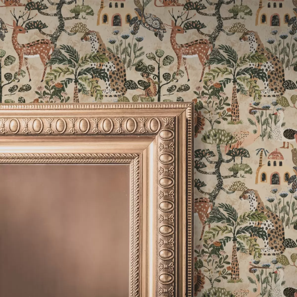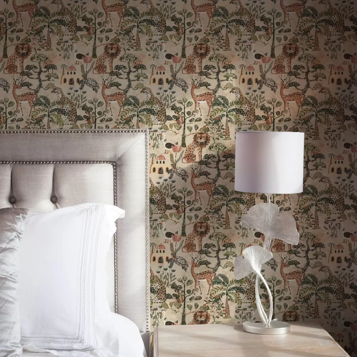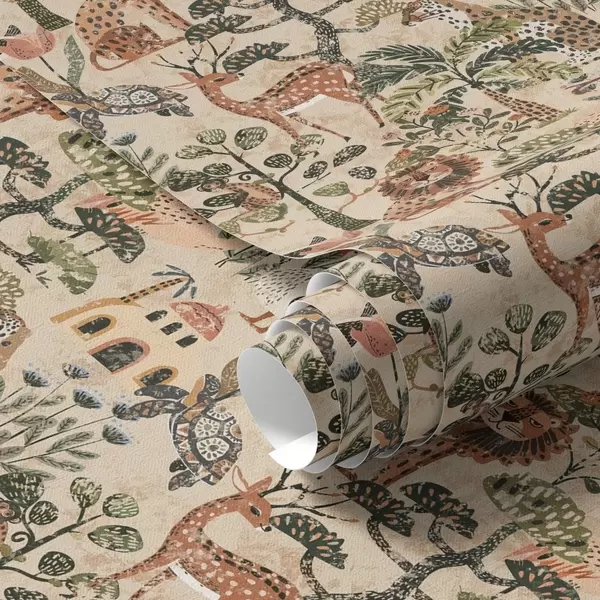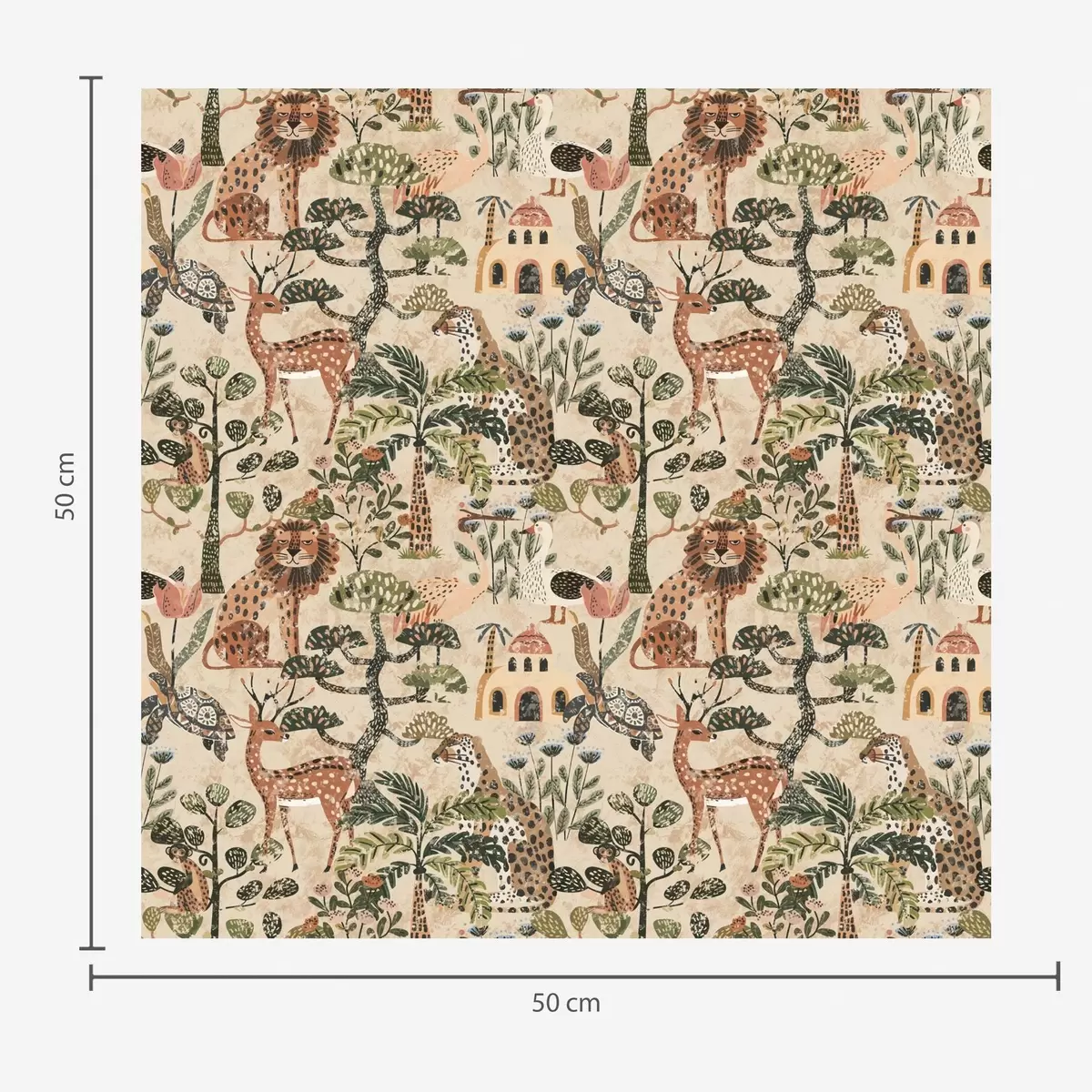 Tapeet Safari loomad ja savannilehed soojades mahedates toonides Nr. a00392