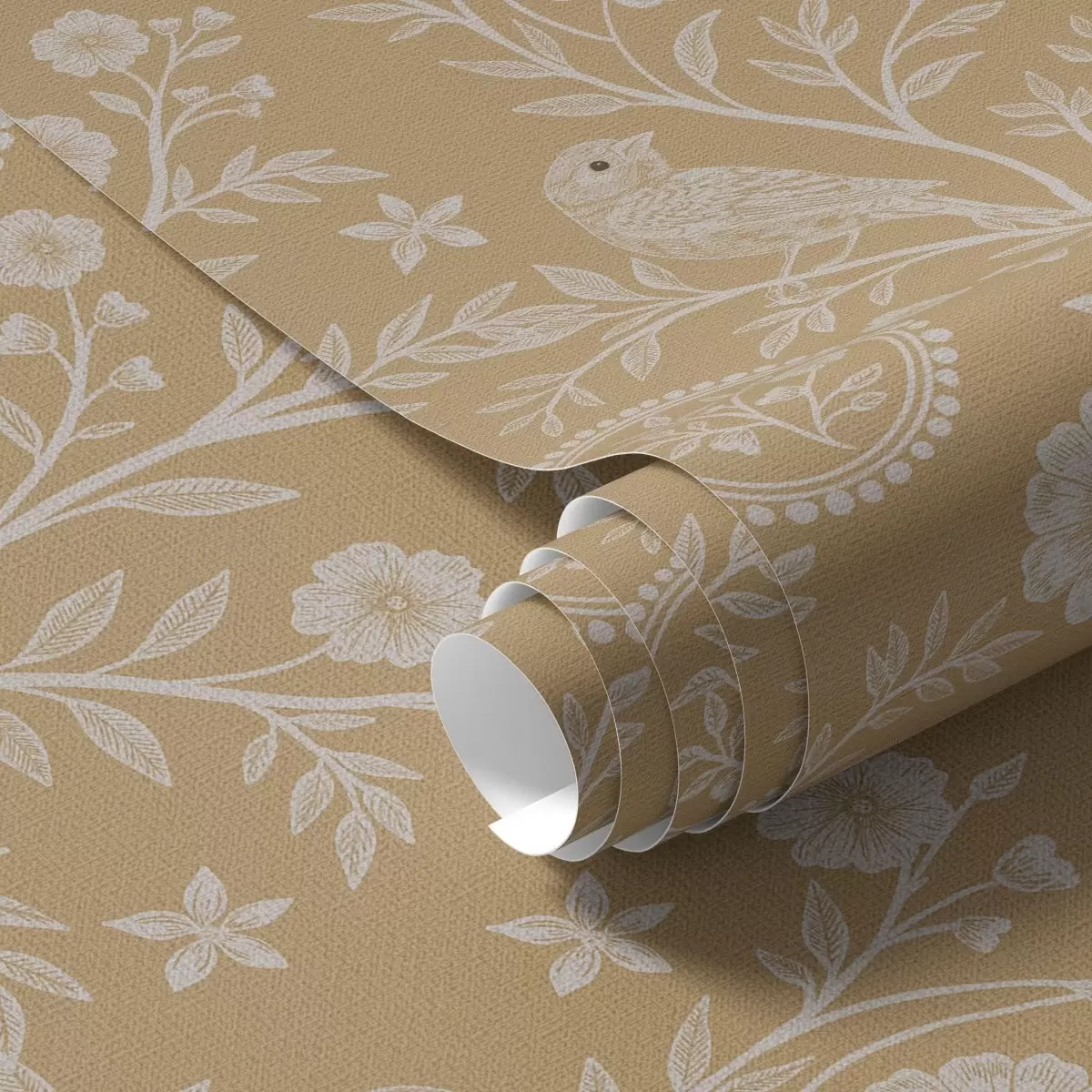 Tapeet Valge linnu ja lille õrn visand valge lind ja lill ooker taustal Nr. a00393