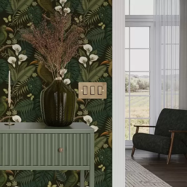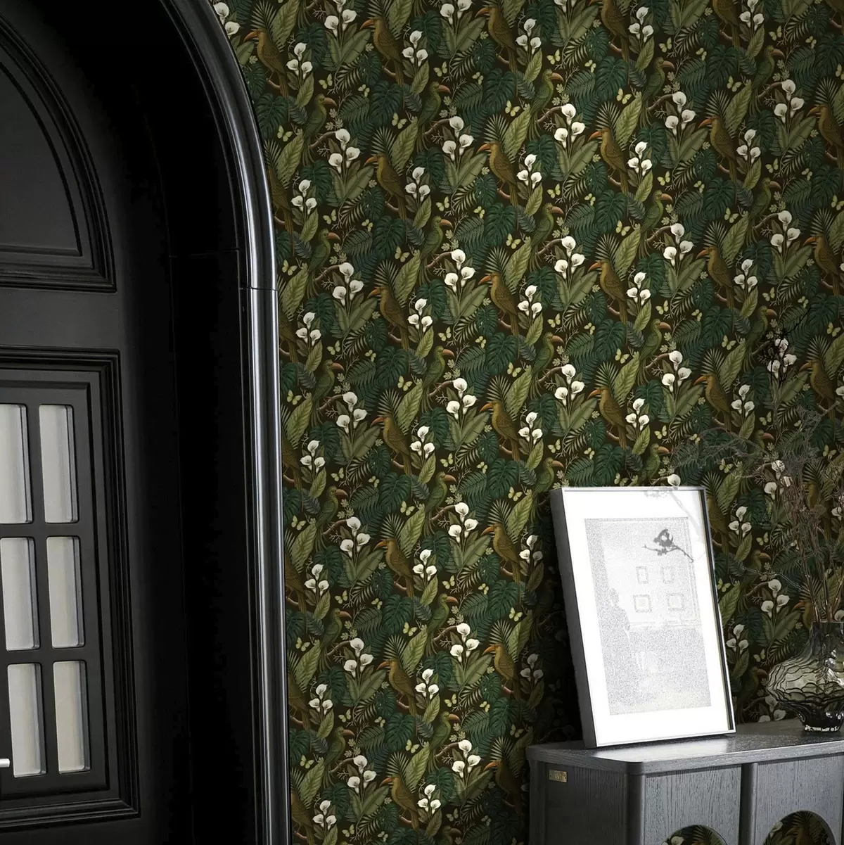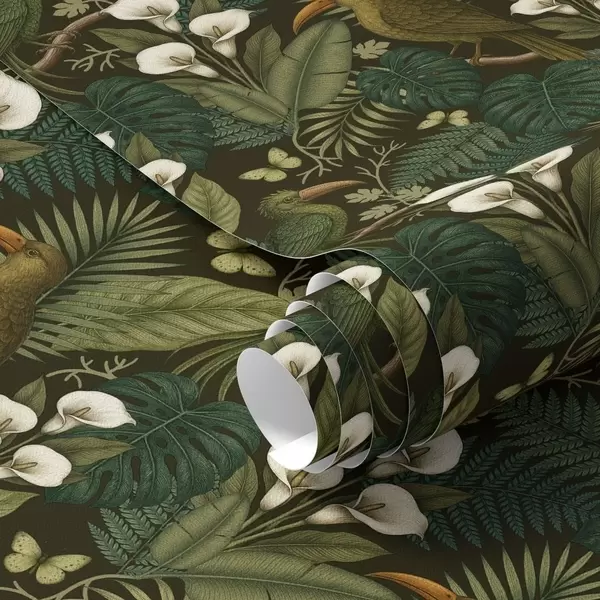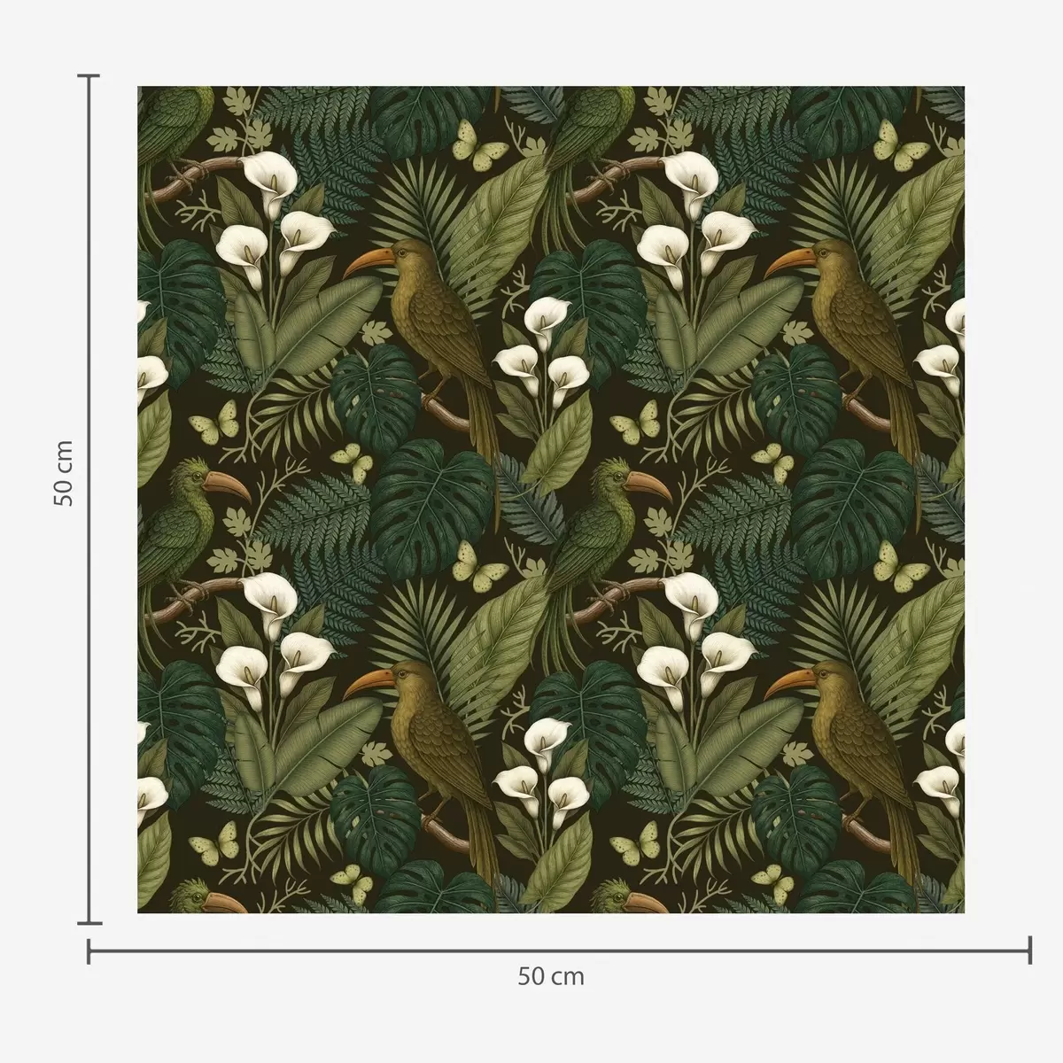 Tapeet Troopilised linnud ja lopsakas rohelus tumedal džungli taustal Nr. a00397