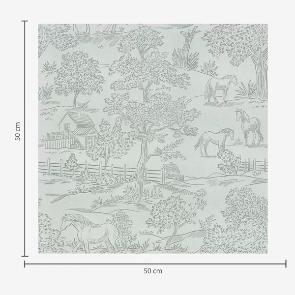 Tapeet Roheline ühevärviline maastik hobuste ja majadega Nr. a00407