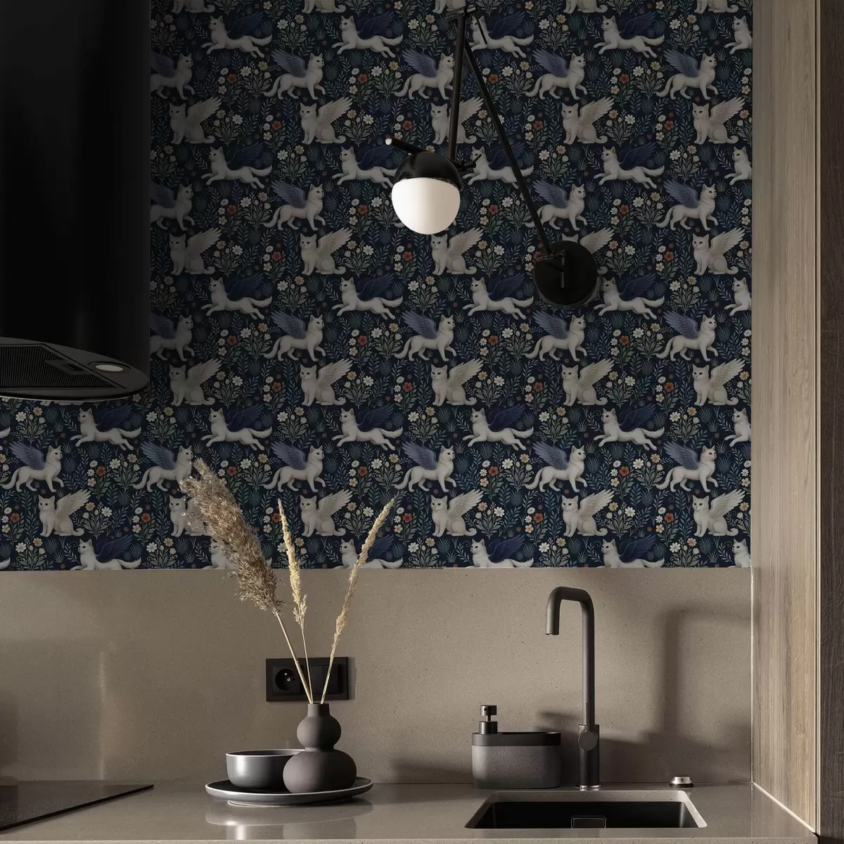 Tapeet Fantaasiakassid tiibadega lillede vahel Nr. a00408