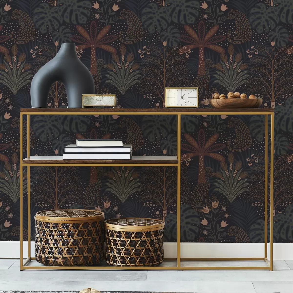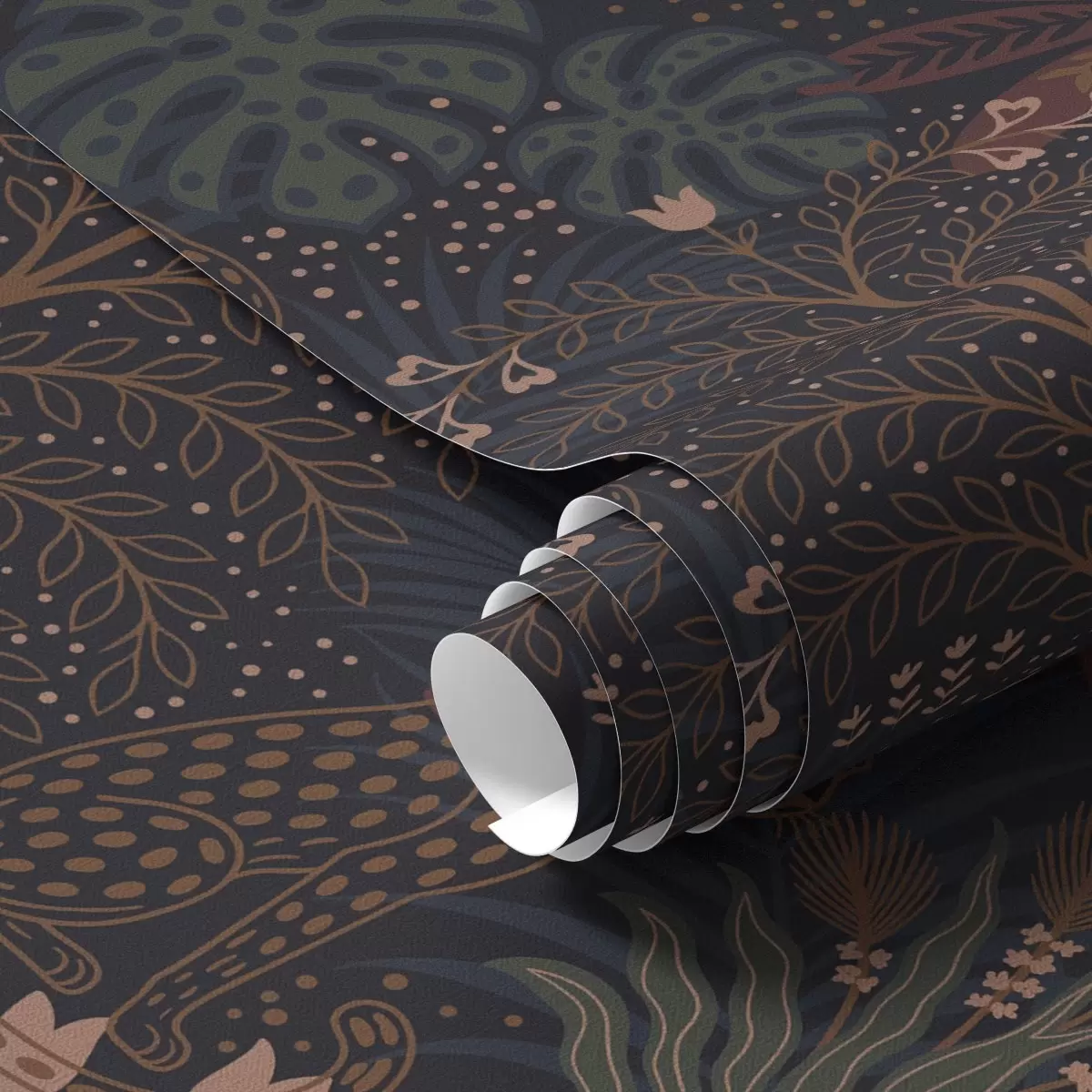 Tapeet Tume džungel koos leopardide palmide ja lilledega Nr. a00424