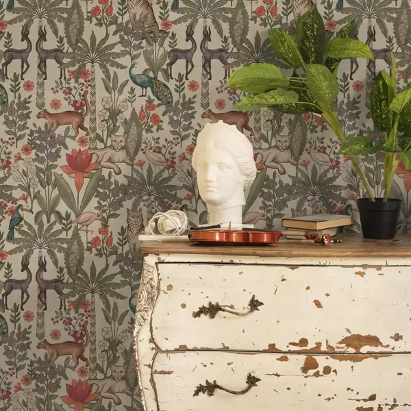 Tapeet Retro stiilis: Loomad ja lilled vintage taustal Nr. a00431