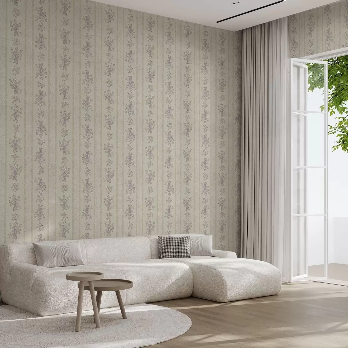 Tapeet Vintage lilled triibulisel taustal koos ornamendiga Nr. a00440