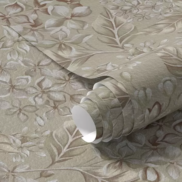 Tapeet Beežid oksad valgete lilledega soojades toonides Nr. a00441
