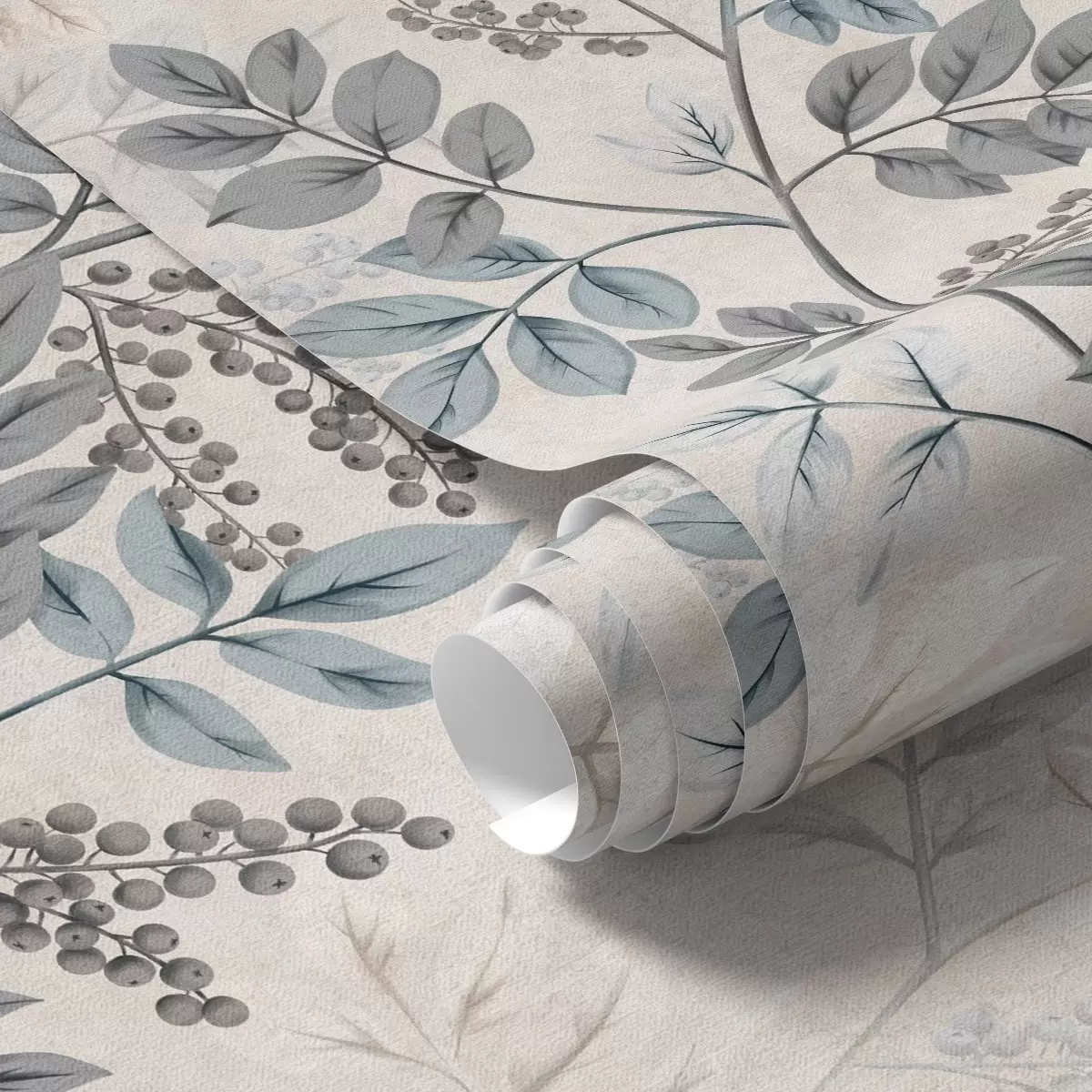 Tapeet Pastelsetes toonides marjaoksad halli-siniste lehtedega Nr. a00443