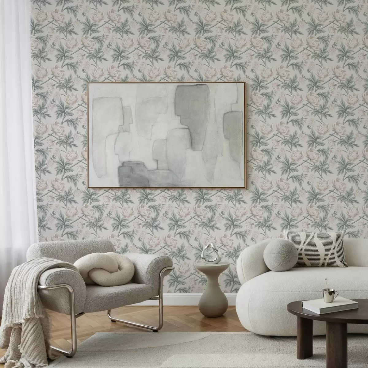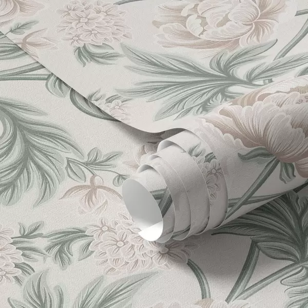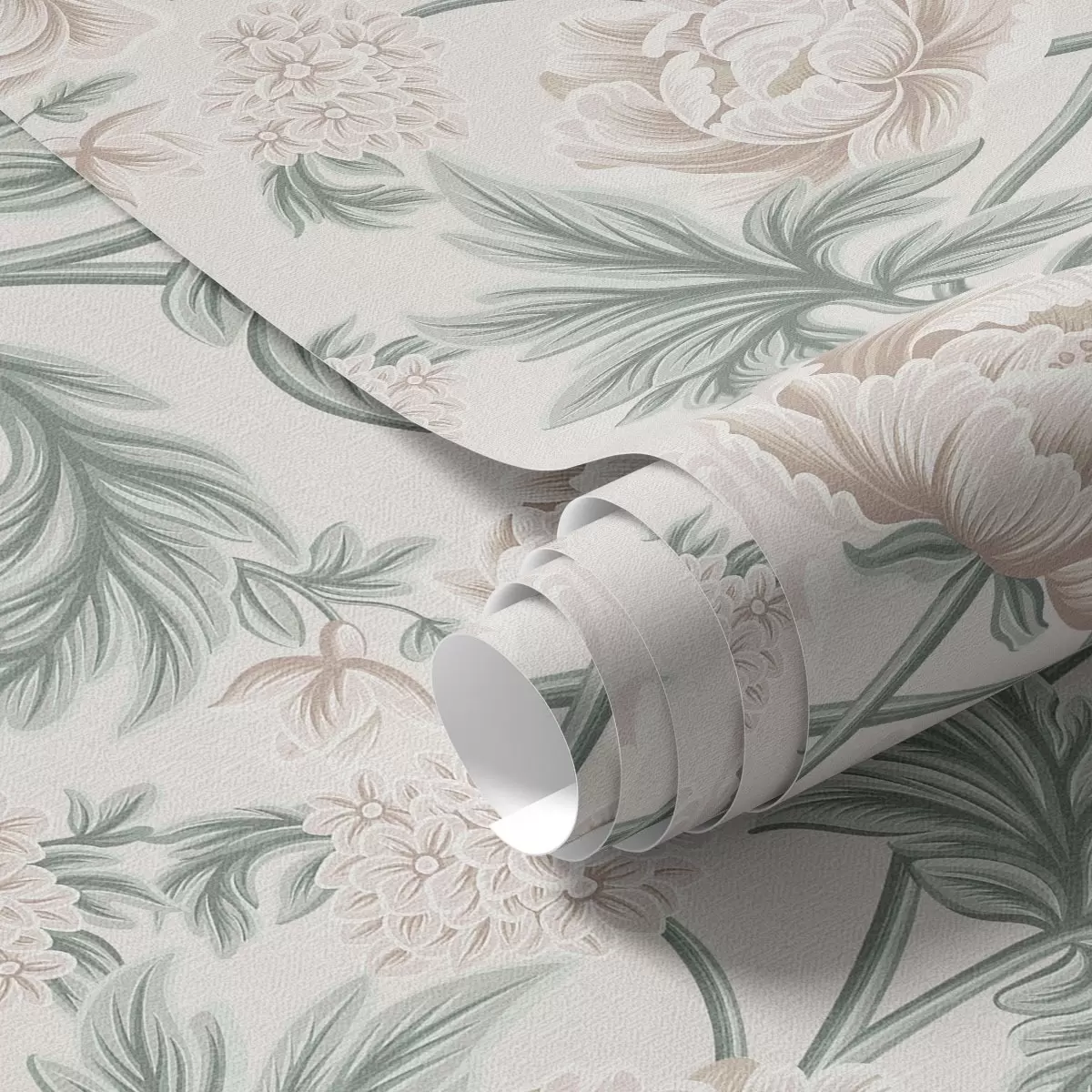 Tapeet Lopsakad pojengid helebeeži ja rohelise beeži ja rohelise värvusega Nr. a00445