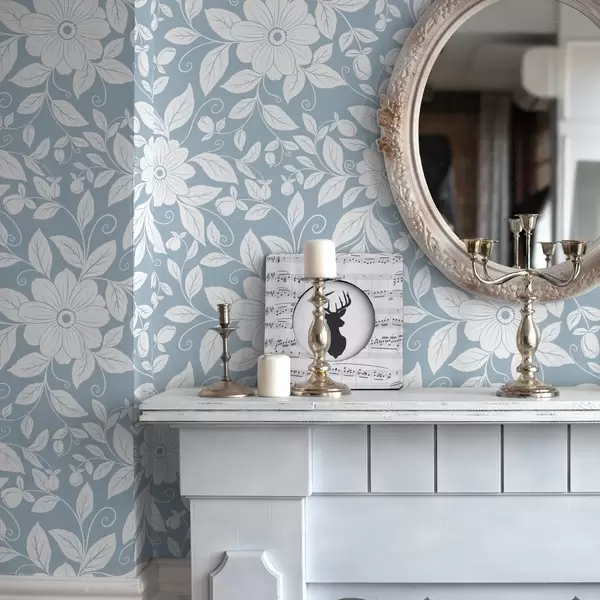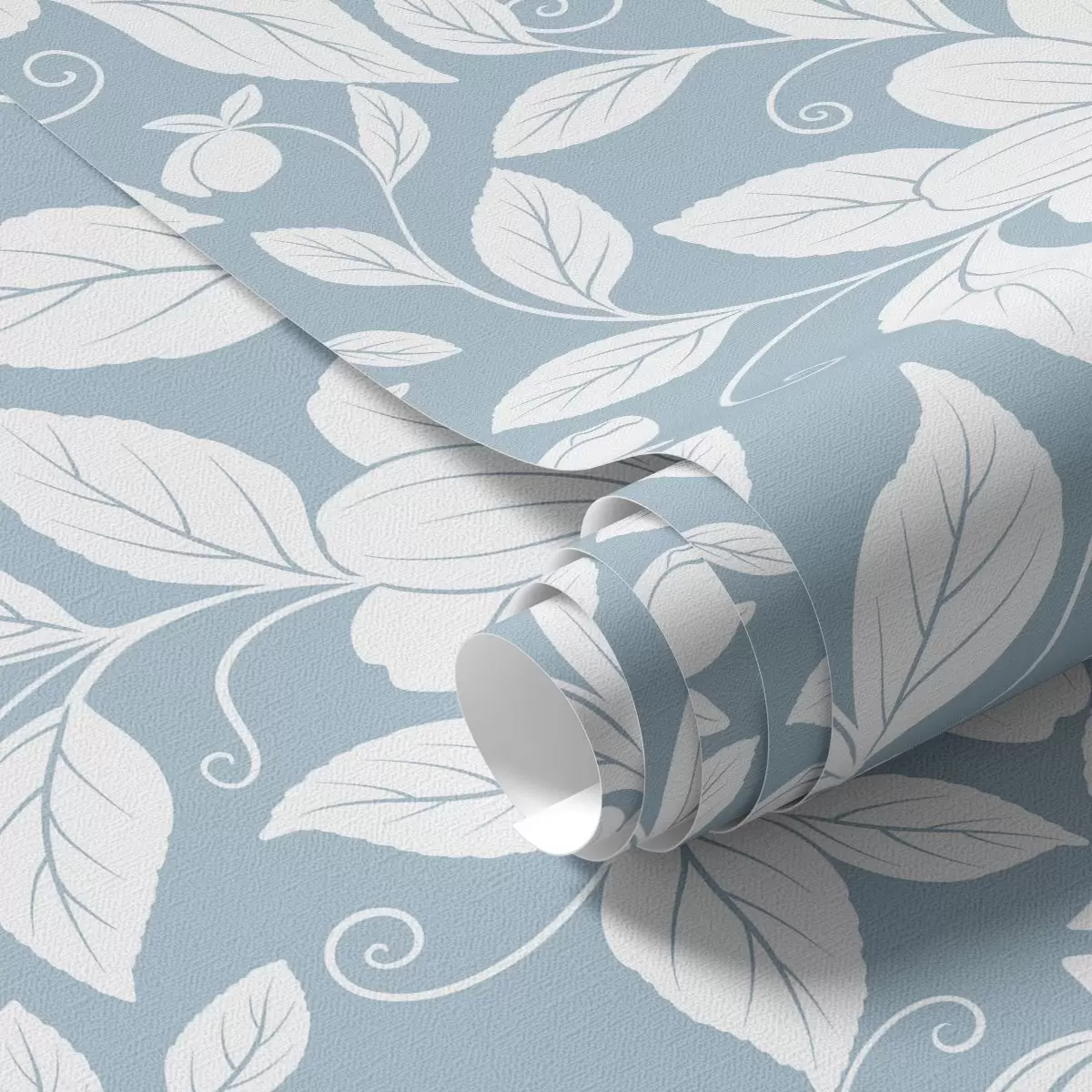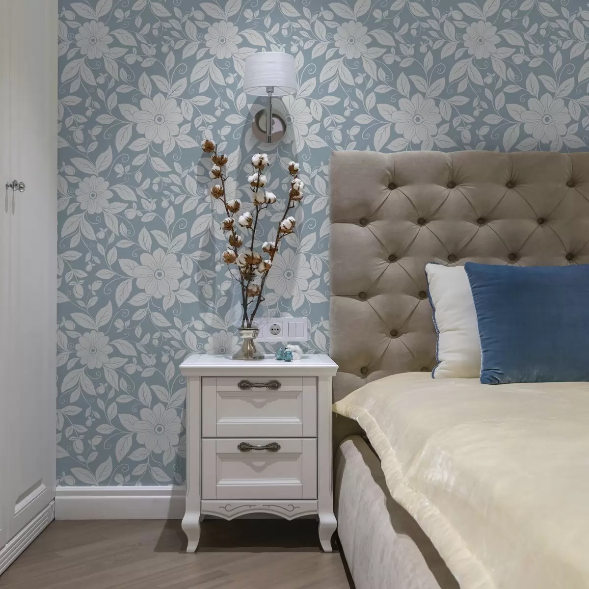 Tapeet Valge lillejoonis pastelsinisel taustal Nr. a00452