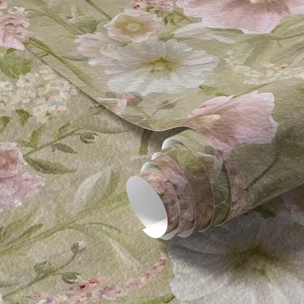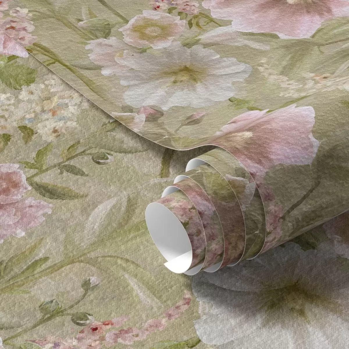Tapeet Romantilised roosa ja valged mammutlillekapsad vaoshoitud rohelisel taustal Nr. a00456