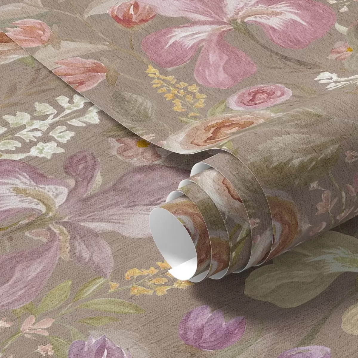 Tapeet Vintage roosa iirise lille muster beežil tekstuurilisel taustal Nr. a00457