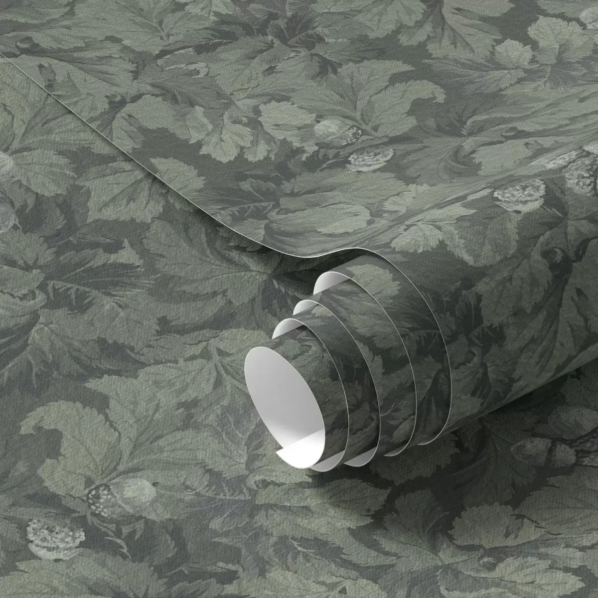 Tapeet Tume tekstuuriga lehtede tammesid sügavrohelise värvusega Nr. a00461