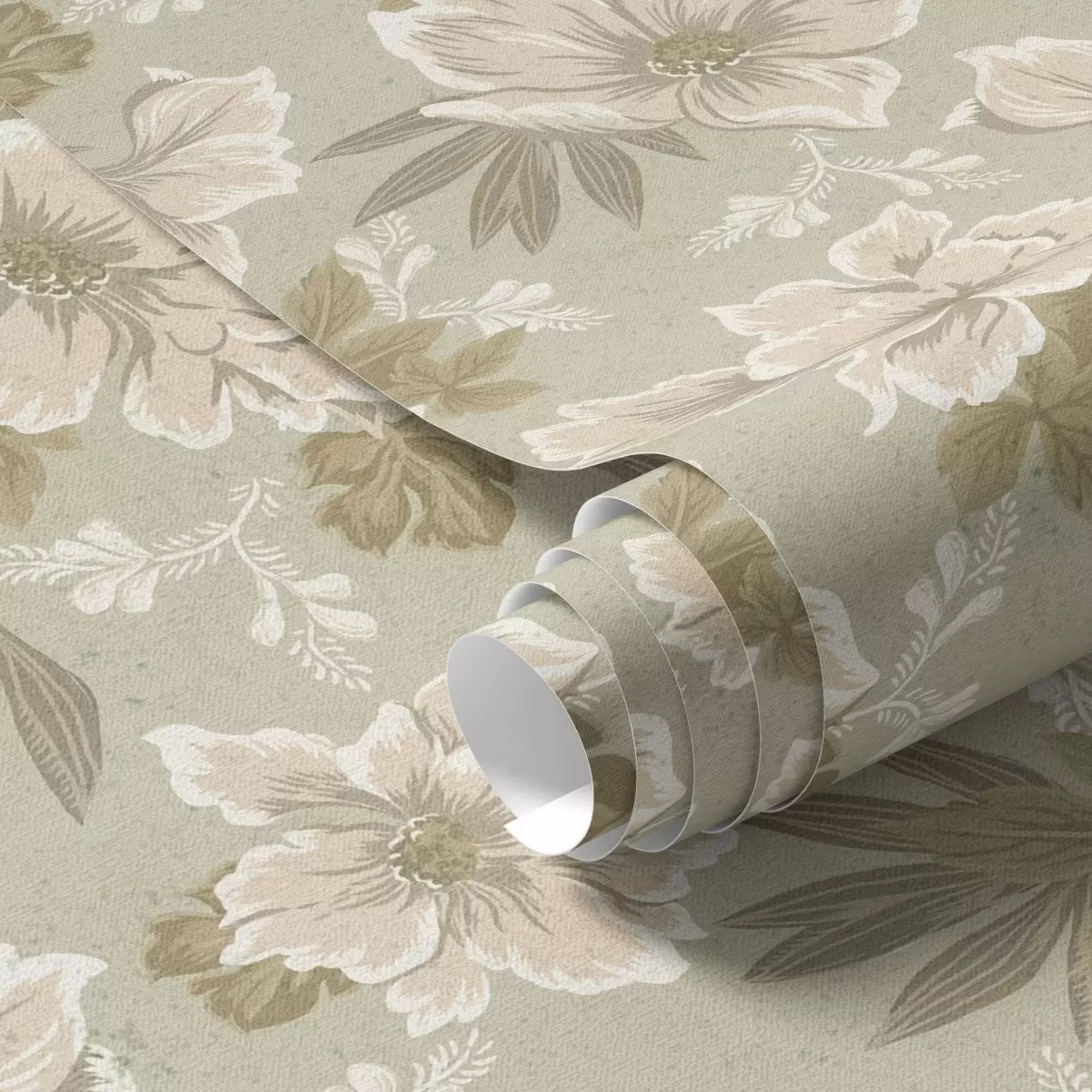 Tapeet Kreemjad lilled oliivrohelisel taustal Nr. a00462