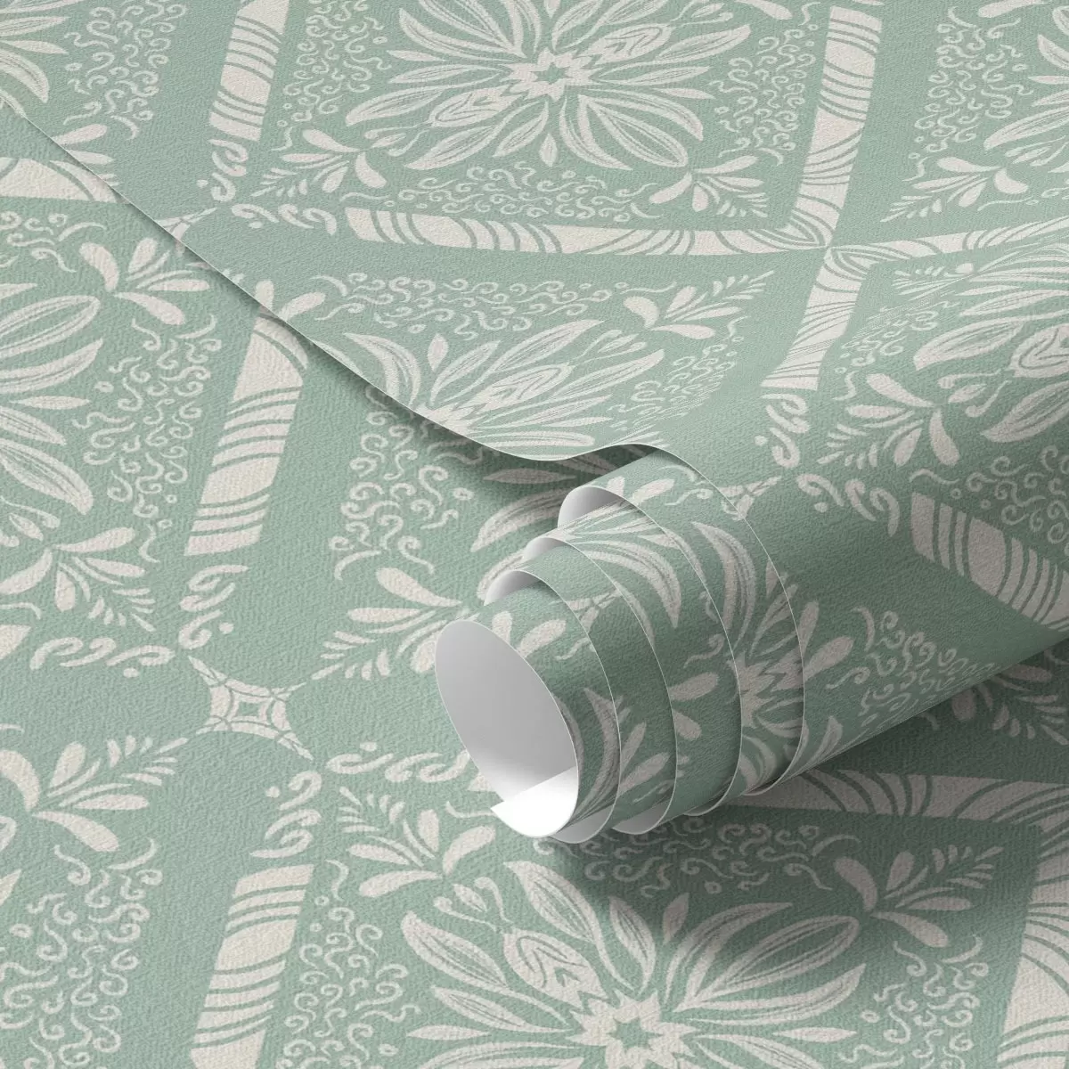 Tapeet Türkiissinine ja beež geomeetriline muster koos lokidega Nr. a00466