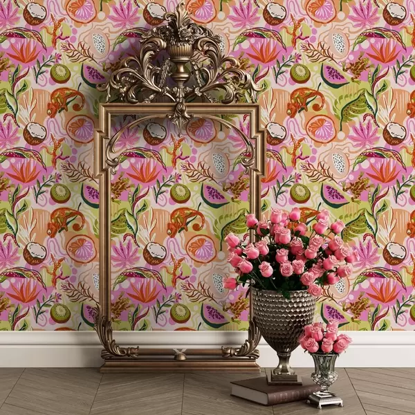 Tapeet Eksootilised puuviljad, lehed ja kameeleonid troopilises stiilis a00469