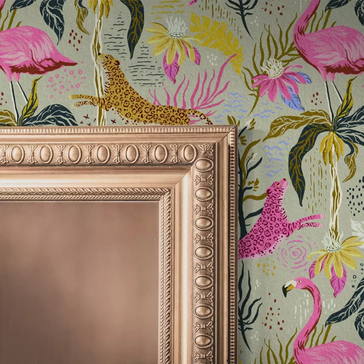Tapeet Säravad flamingod ja leopardid troopiliste taimede keskel Nr. a00470