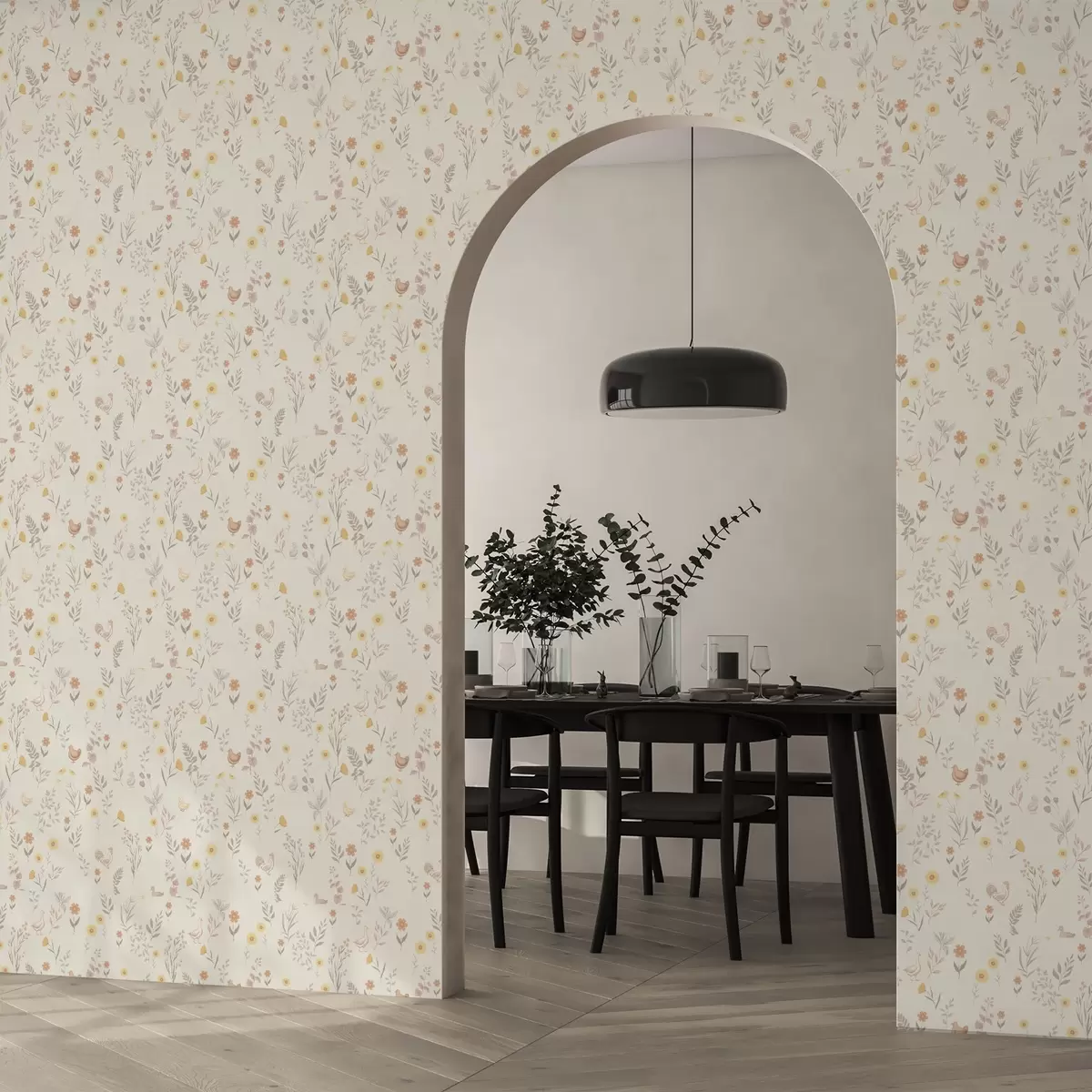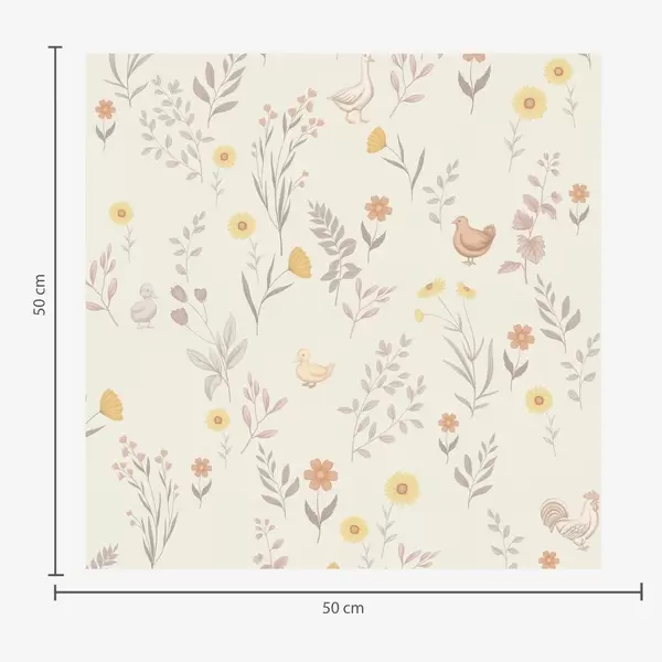 Tapeet Põllulilled ja kanad pehmetes pastelsetes toonides Nr. a00478