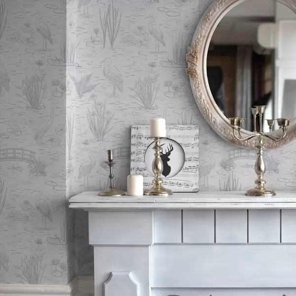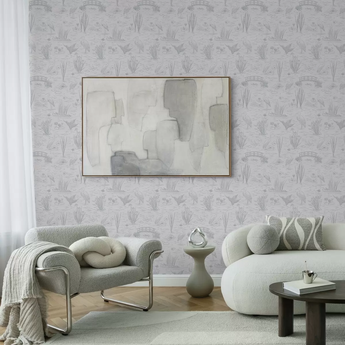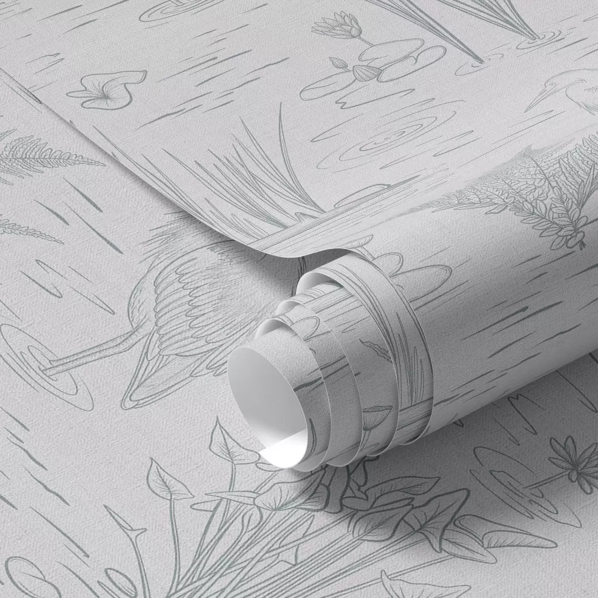 Tapeet Rahulikes hallides toonides joonistus haigrutest ja veetaimedest Nr. a00479