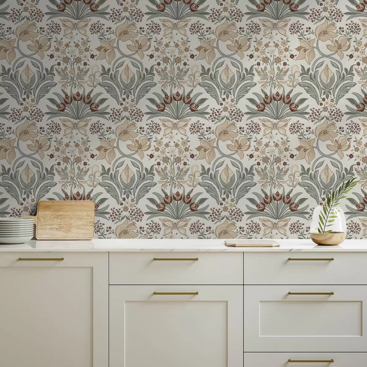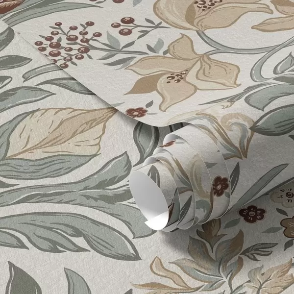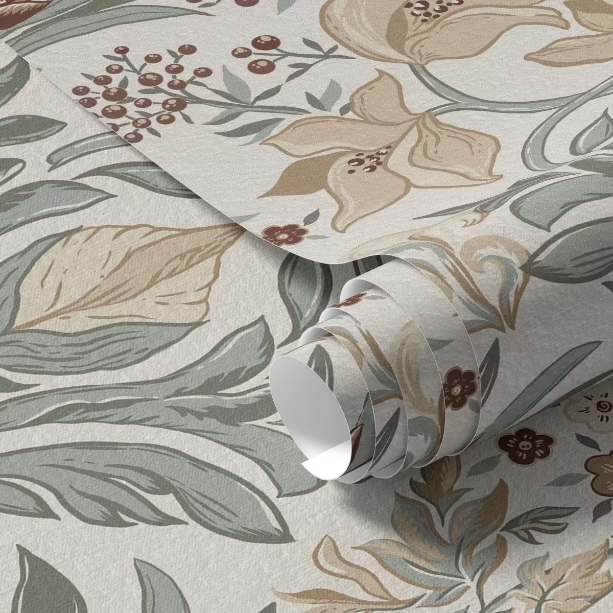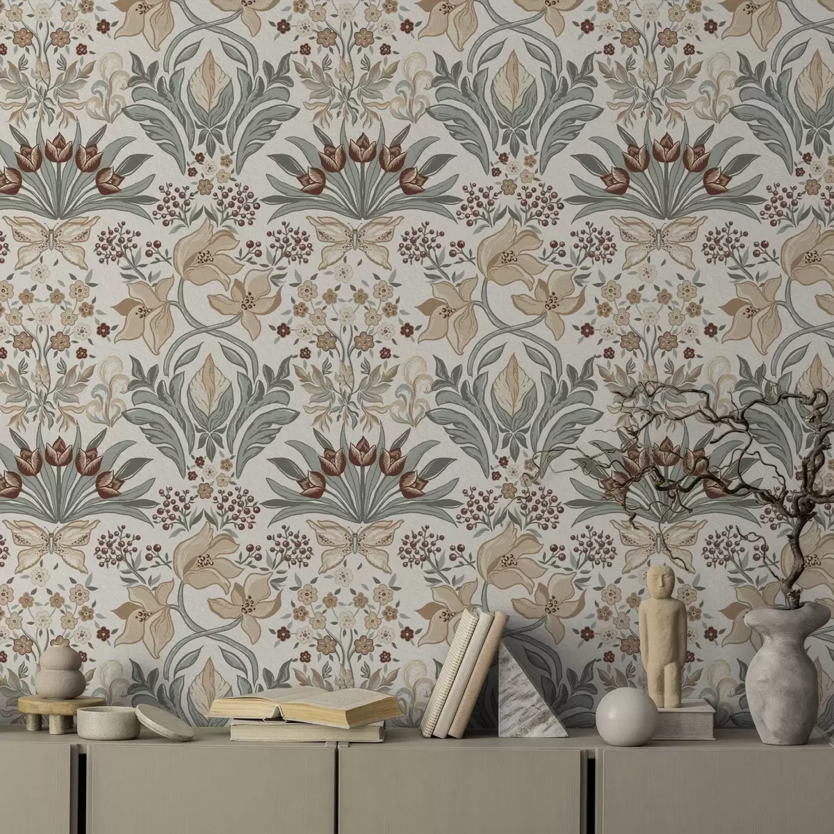 Tapeet Dekoratiivsed liiliad ja liblikas kreemikal taustal Nr. a00500