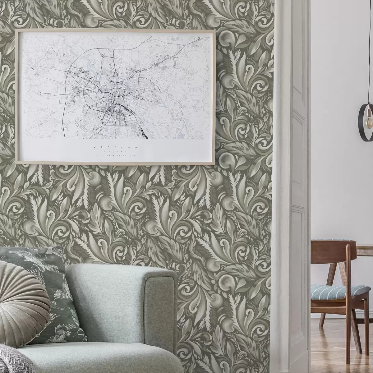Tapeet Akanthus-lehed oliivi-beeži värvipalettis Nr. a00501