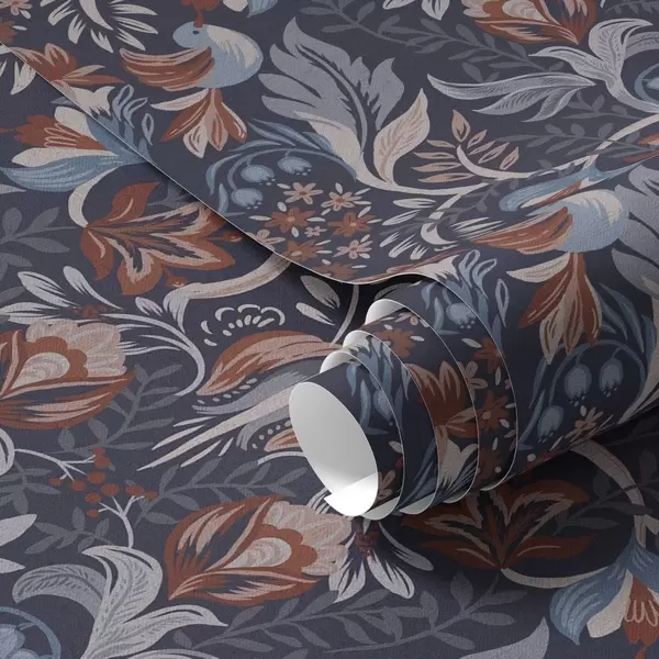 Tapeet Rahva lilled ja linnud tumesinisel taustal Nr. a00502